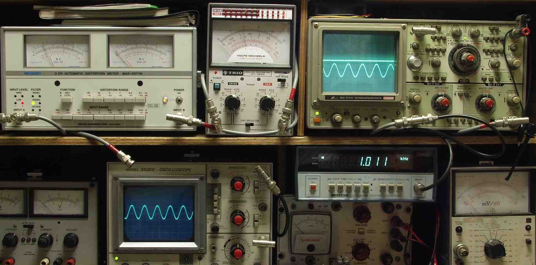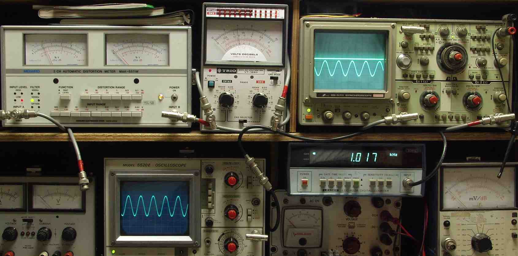 上左オーディオ発振器より400HZ・1KHZの信号を出す(歪み率=約0.005%)