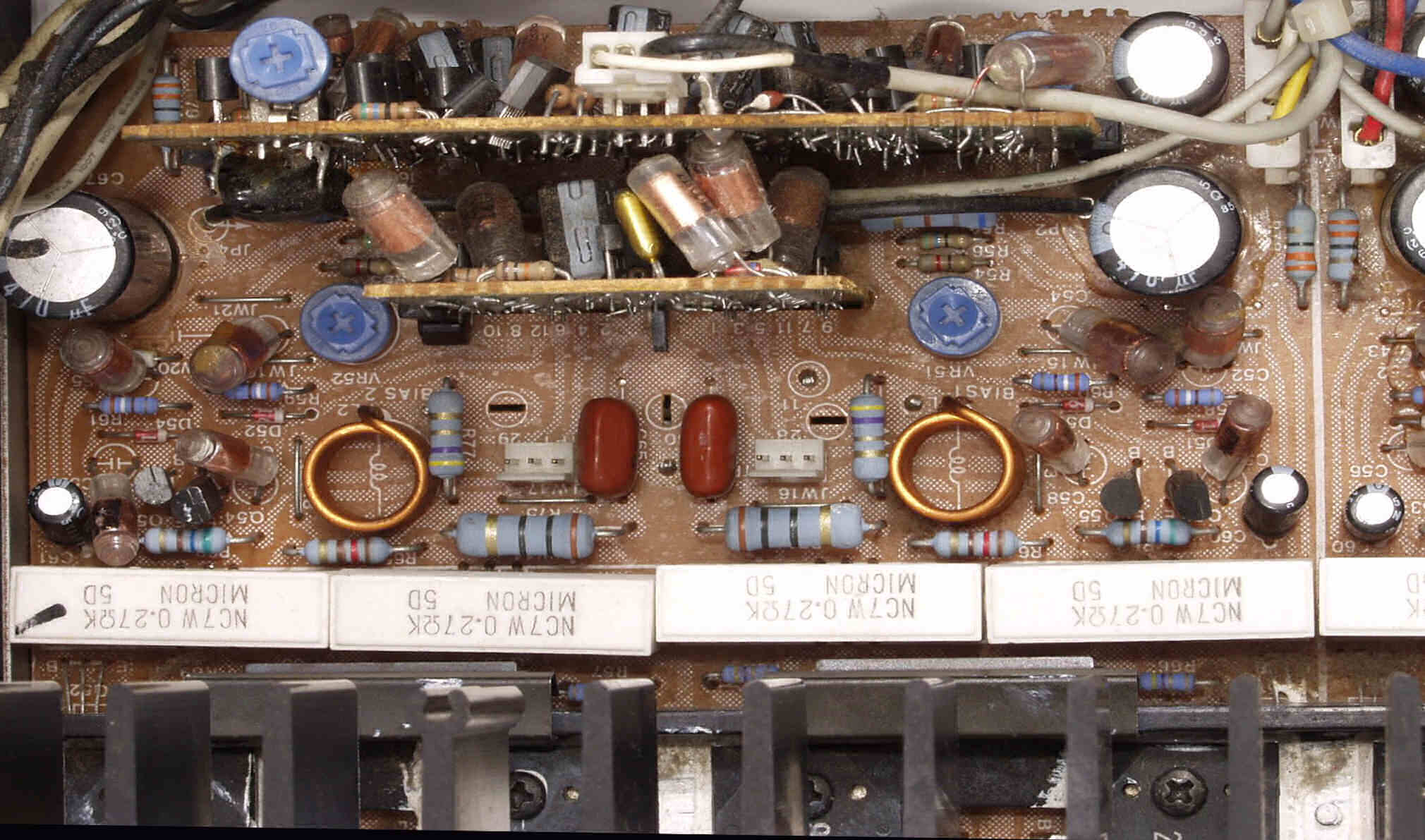 C−4C. 修理前 メイン・ドライブAMP基板裏