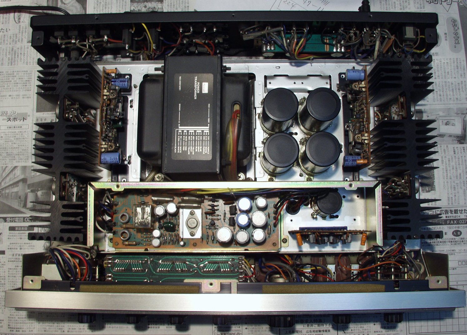 C−2A. 修理前 R側 終段トランジスター 熱でシリコングリスが流れ出し殆ど無い、右上1個死に