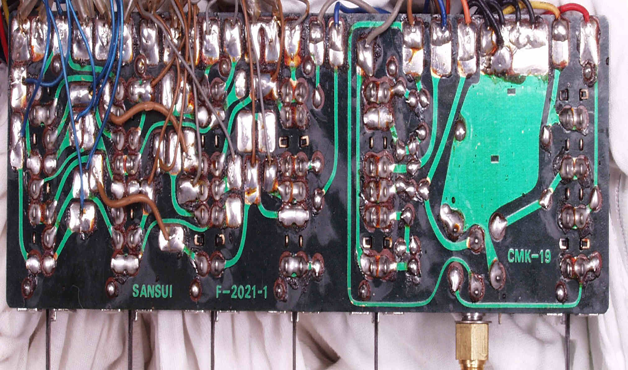 | C8B. 修理前 SW基板裏、手付けなので劣化は非常に少ない | ||||||||||||||||||||||||||||||||||||||||||