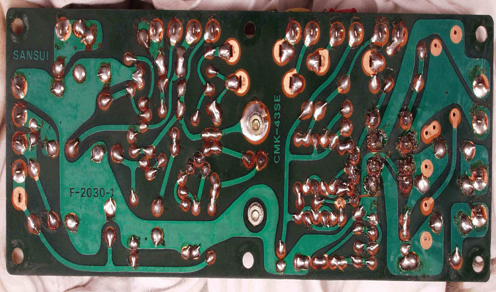 | C6C−1. 修理前 EQ−AMP基板裏 銅箔剥離の跡 | ||||||||||||||||||||||||||||||||||||||||||