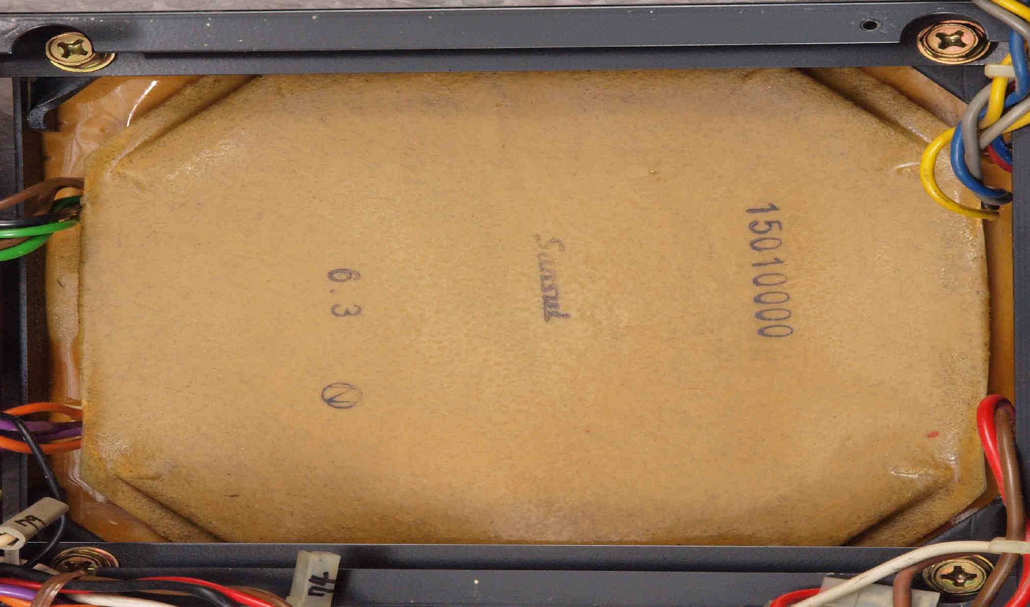 | A7. 点検中 電源トランスの詰め物、焼けも無く、綺麗です。 | ||||||||||||||||||||||||||||||
