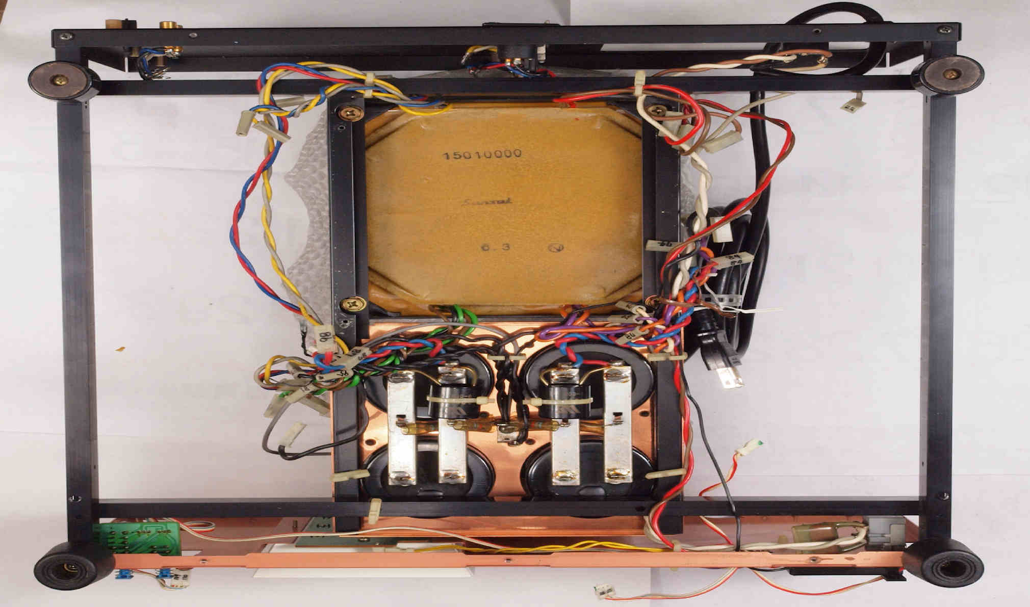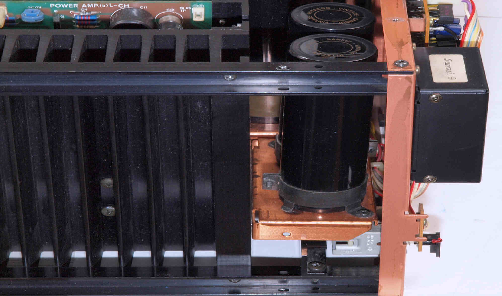 | C115. 修理中 R側AMPブロック、横取り付けの電解ブロックコンデンサー、底だけの固定なので曲がっている。 | ||||||||||||||||||||||||||||||