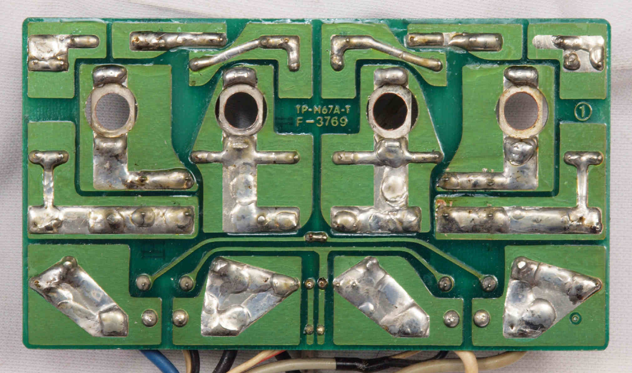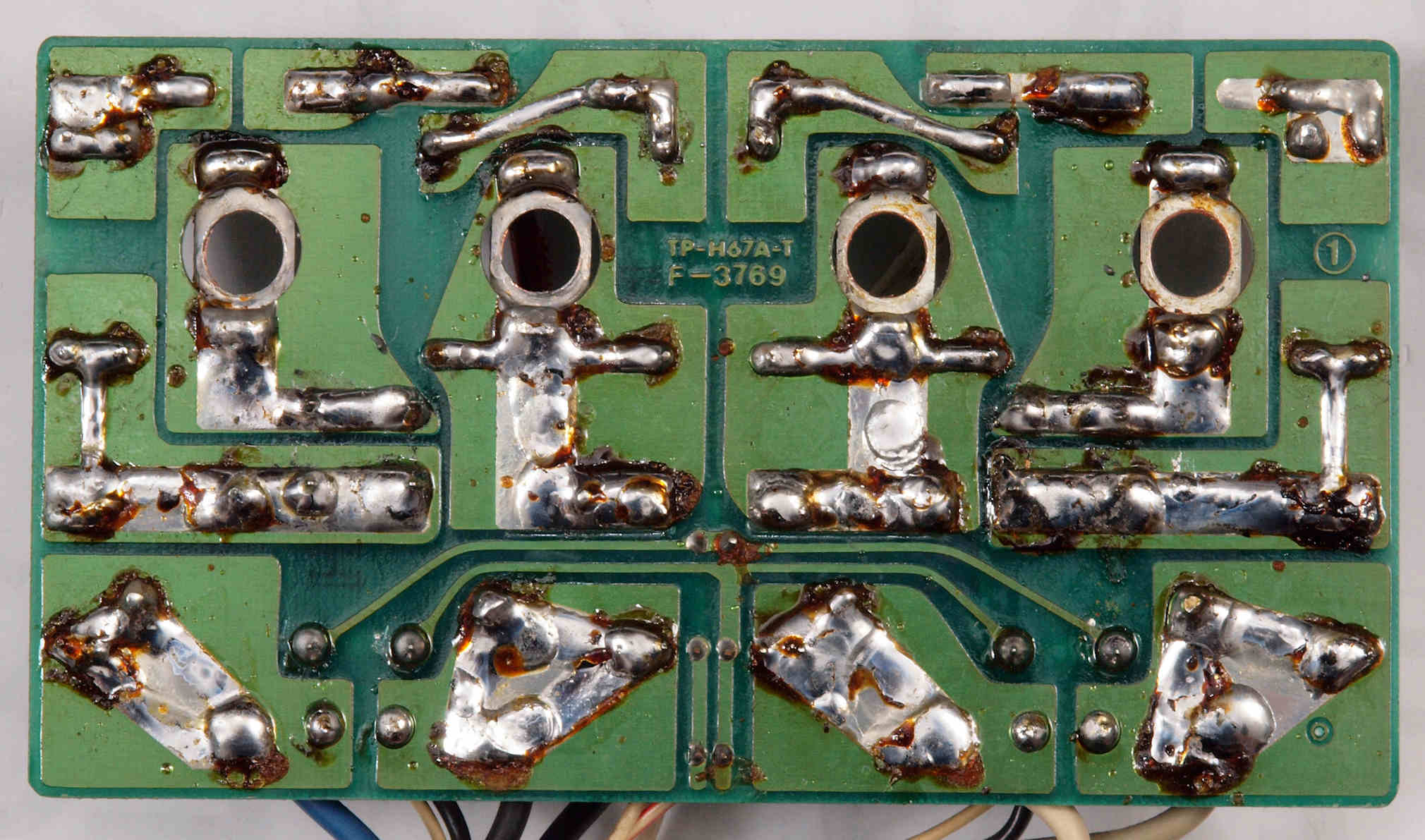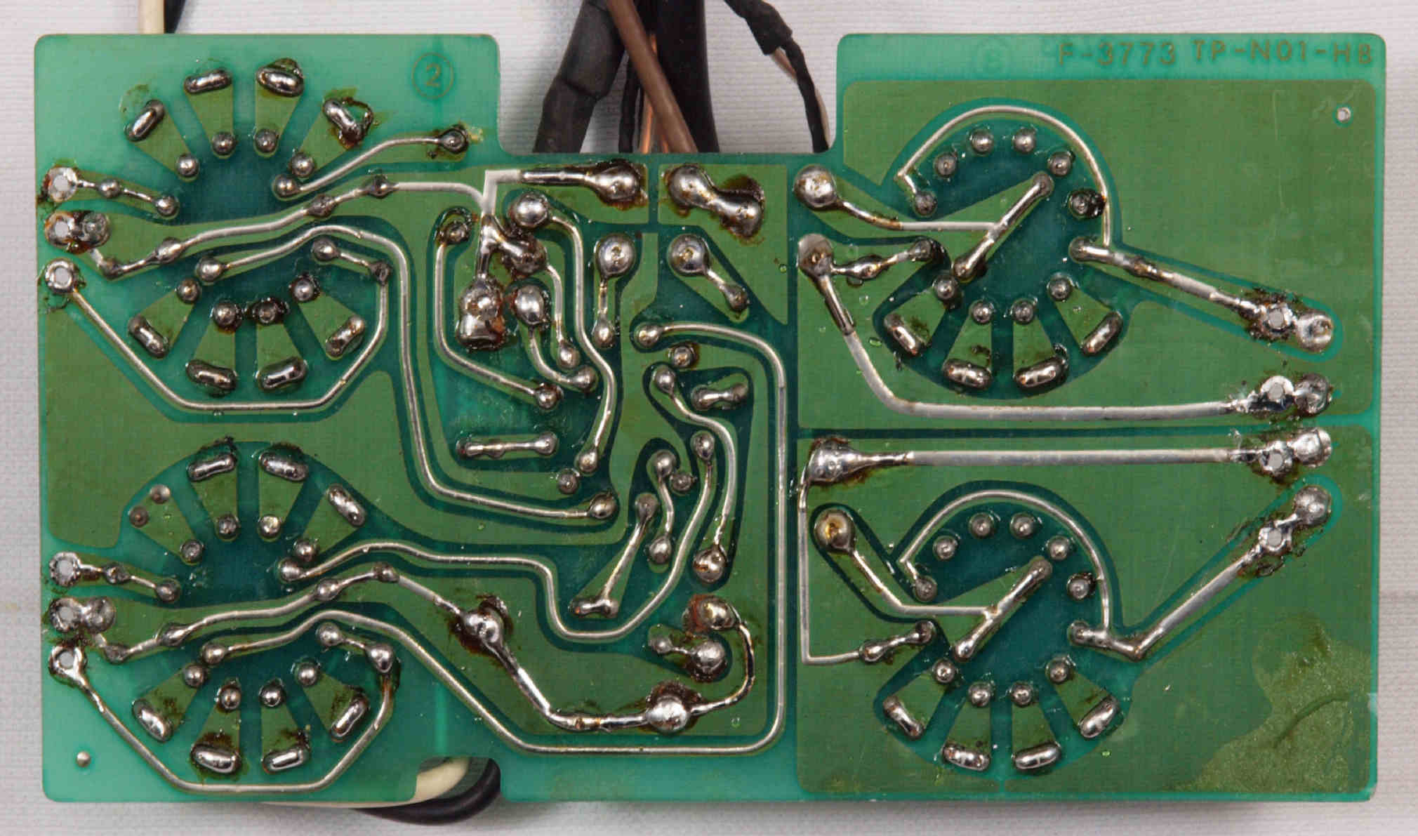 | C73. 修理(半田補正)後 電源表示LED基板裏・モードSW基板裏。 半田を全部やり直す。 | ||||||||||||||||||||||||||||||