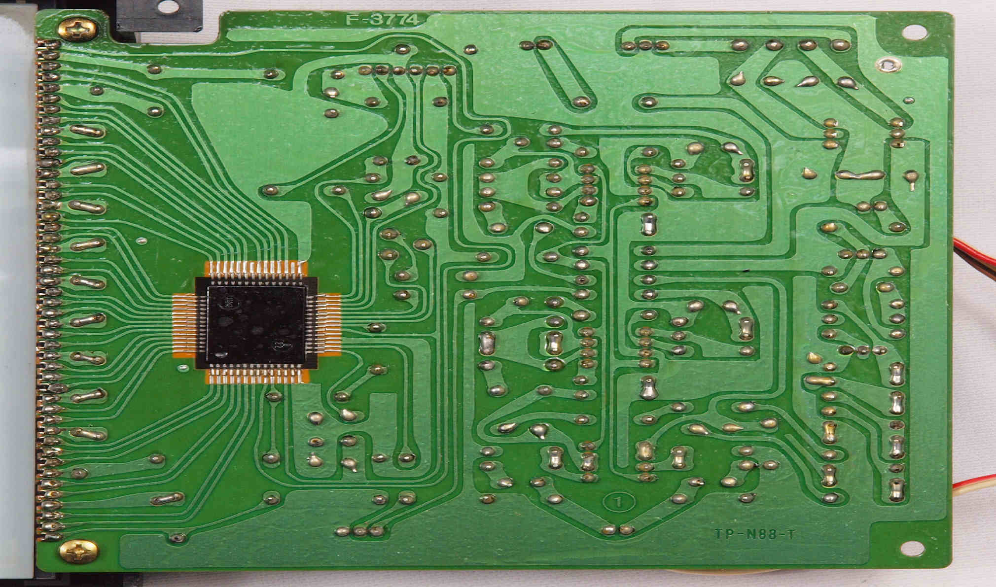 | C232. 修理中 LAMP基板、電解コンデンサー固定用の接着材、当時は溶媒にトルエンが使用されており、銅を腐食する。 | ||||||||||||||||||||||||||||||