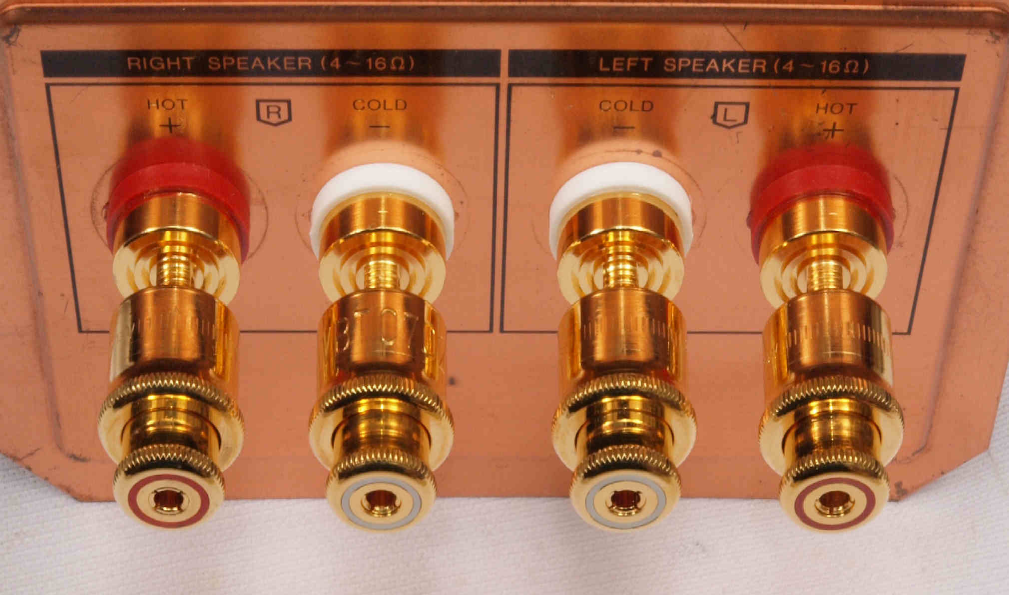 | 注意 このAMPはアースラインが浮いています AMPのシャーシにSPの線(アース側)を接続してはいけません RL−SPのアース線も接続(共通)してもいけません このAMPは、DC入力しかなく、バランスの崩れたプリAMPを繋ぐと、過大入力となります 詳しくはここを参照してください |