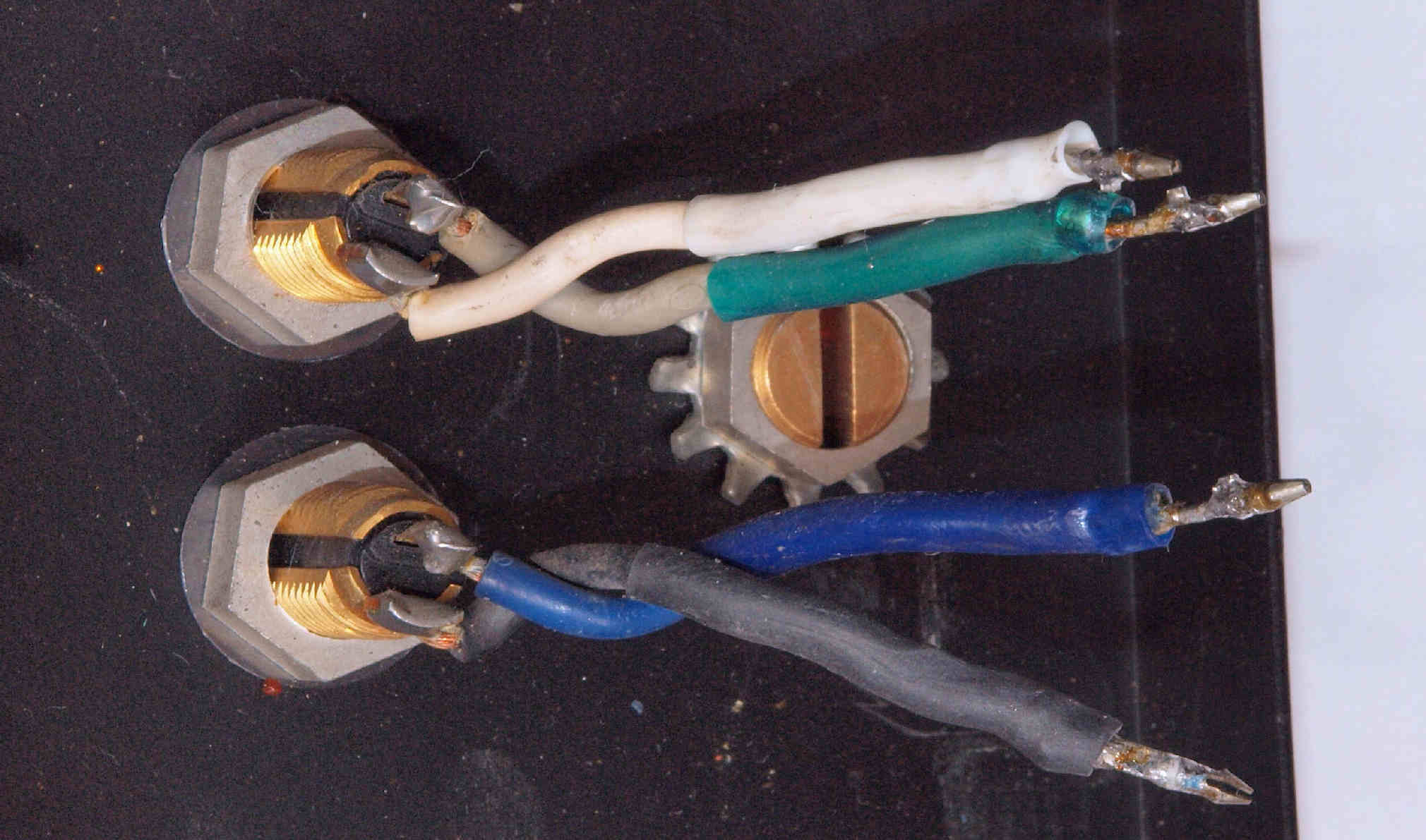 | C604. 修理後 SP接続端子ブロック、端子4個交換、 WBT SP端子 WBT−0702 使用。 Y型端子はサンドイッチスベードWBT-0661Cu |
