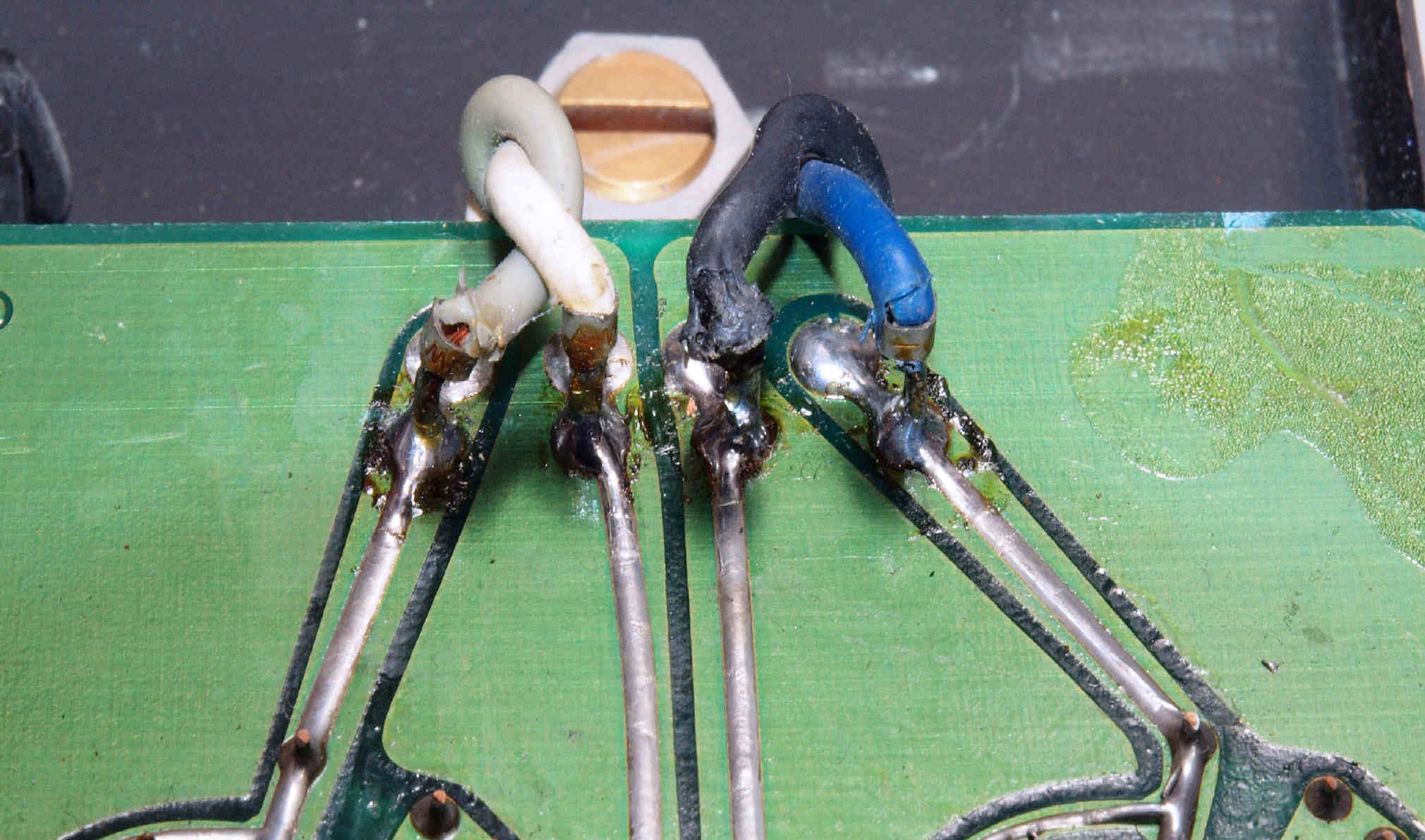 | A91. 点検中 入力VR基板へのRCA端子からの配線、 何回も取り外したのか? しかも銅箔側に半田付け! | ||||||||||||||||||||||||||||||