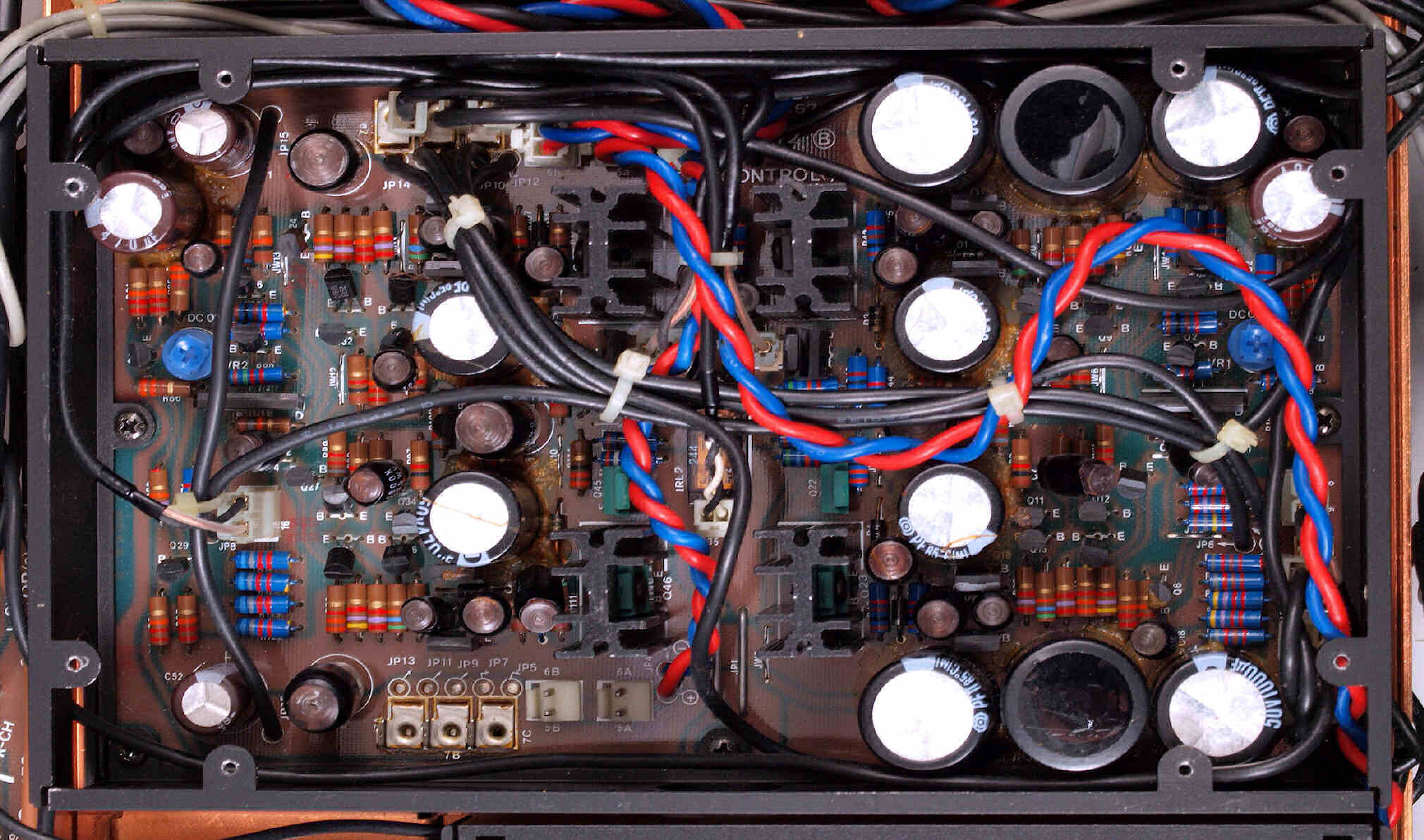 • 電解コンデンサーは綺麗なのですが、経年変化か、やや歪み多い。