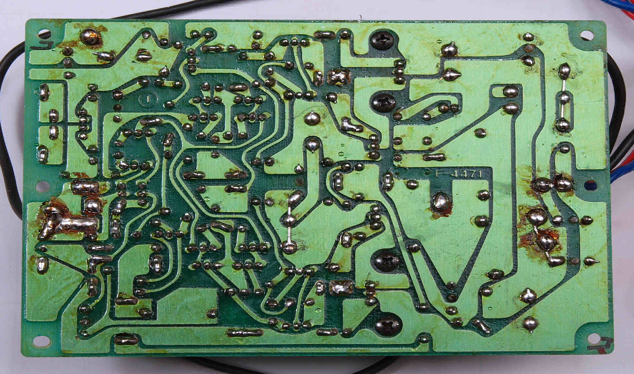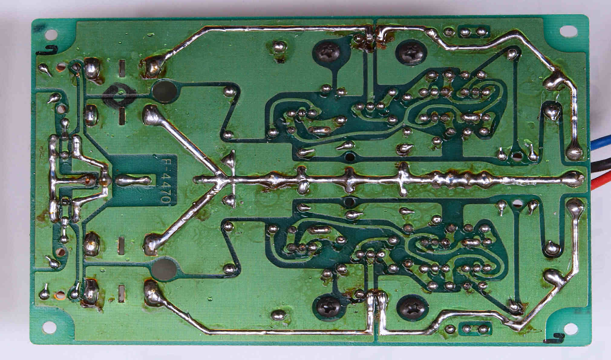 C44. 修理(半田補正)後 L側AMP基板裏。 半田を全部やり直す。