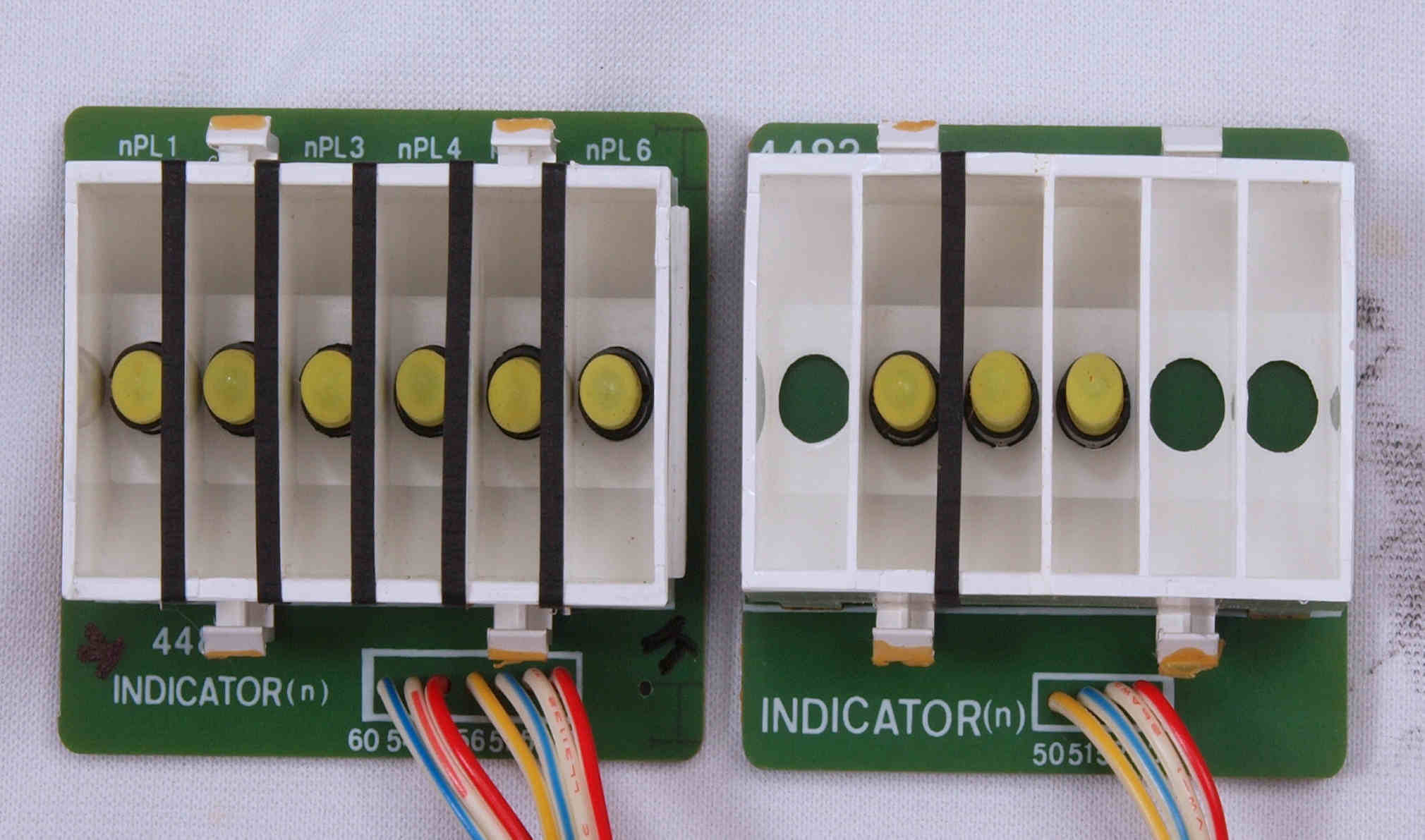 CC11. 修理前 表示ランプ基板、 左=入力、 右=テープ。
