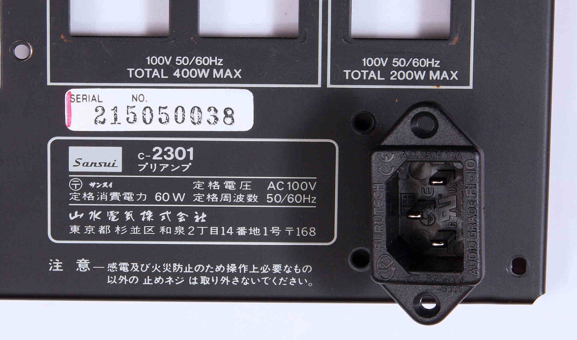 S. Sansui C−2301 の仕様(マニアル・カタログより)