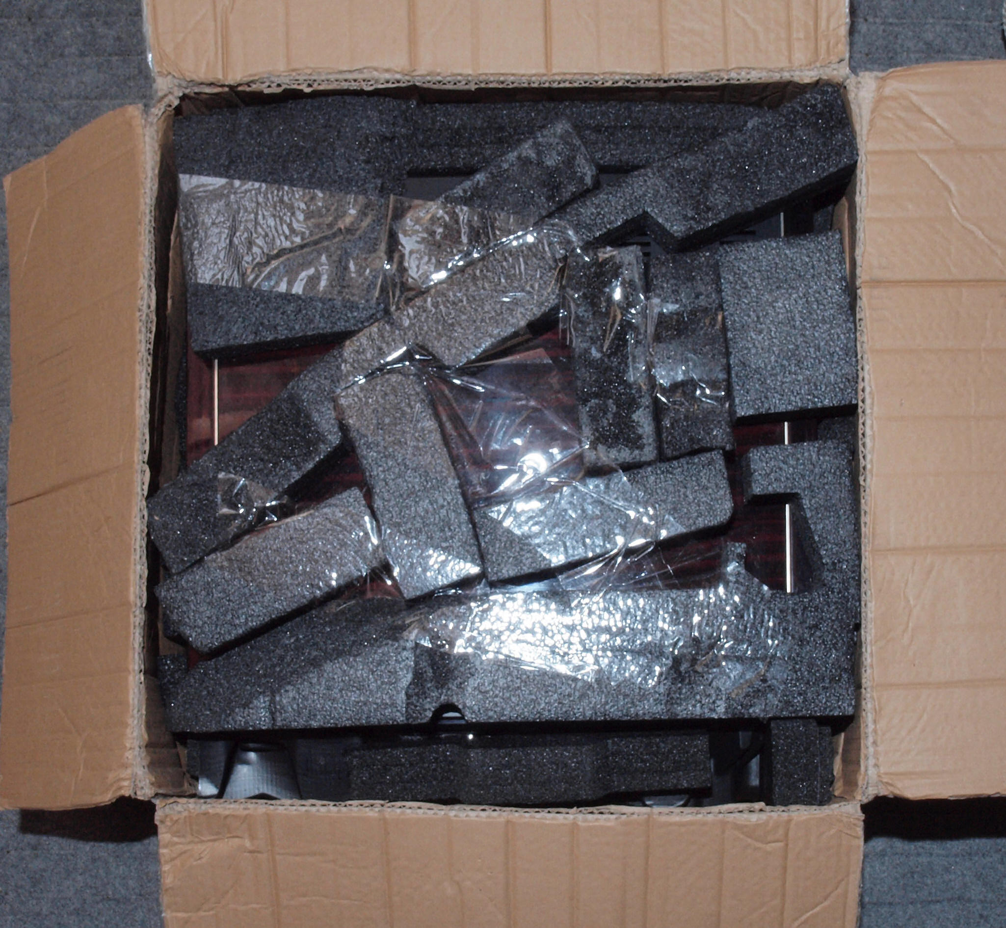 | A. 修理前の状況。 画像をクリックすると、大きく(横幅2050ドット)表示されます。 A1. 点検中 シートぐるぐる巻の梱包で送られて来る。 カンボジア(JAL)→関西空港センター(クロネコヤマト)→群馬県前橋市 |