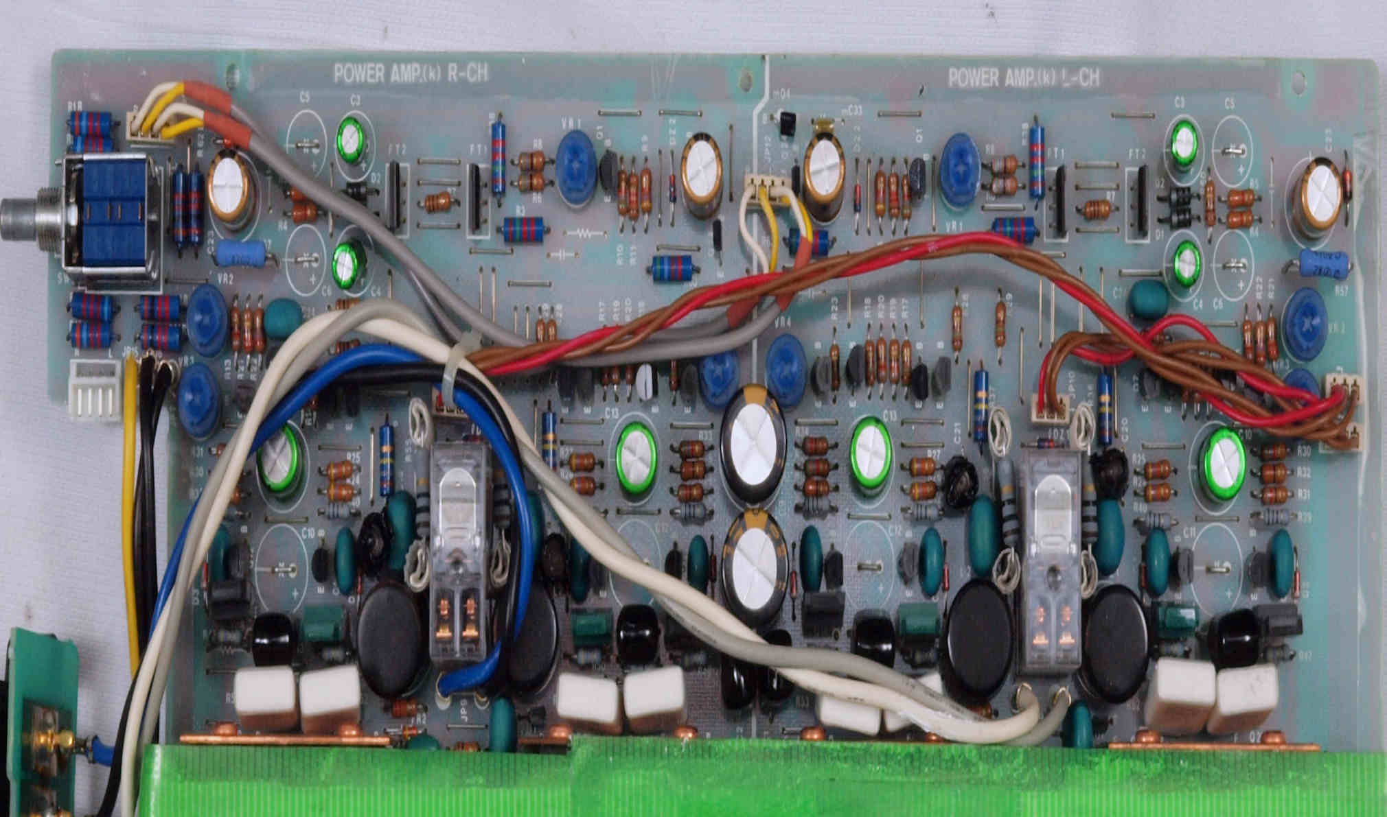| C32. 修理後 AMP基板 リレー2個、FET(電界効果トランジスター)4個、電解コンデンサー22個交換。 | ||||||