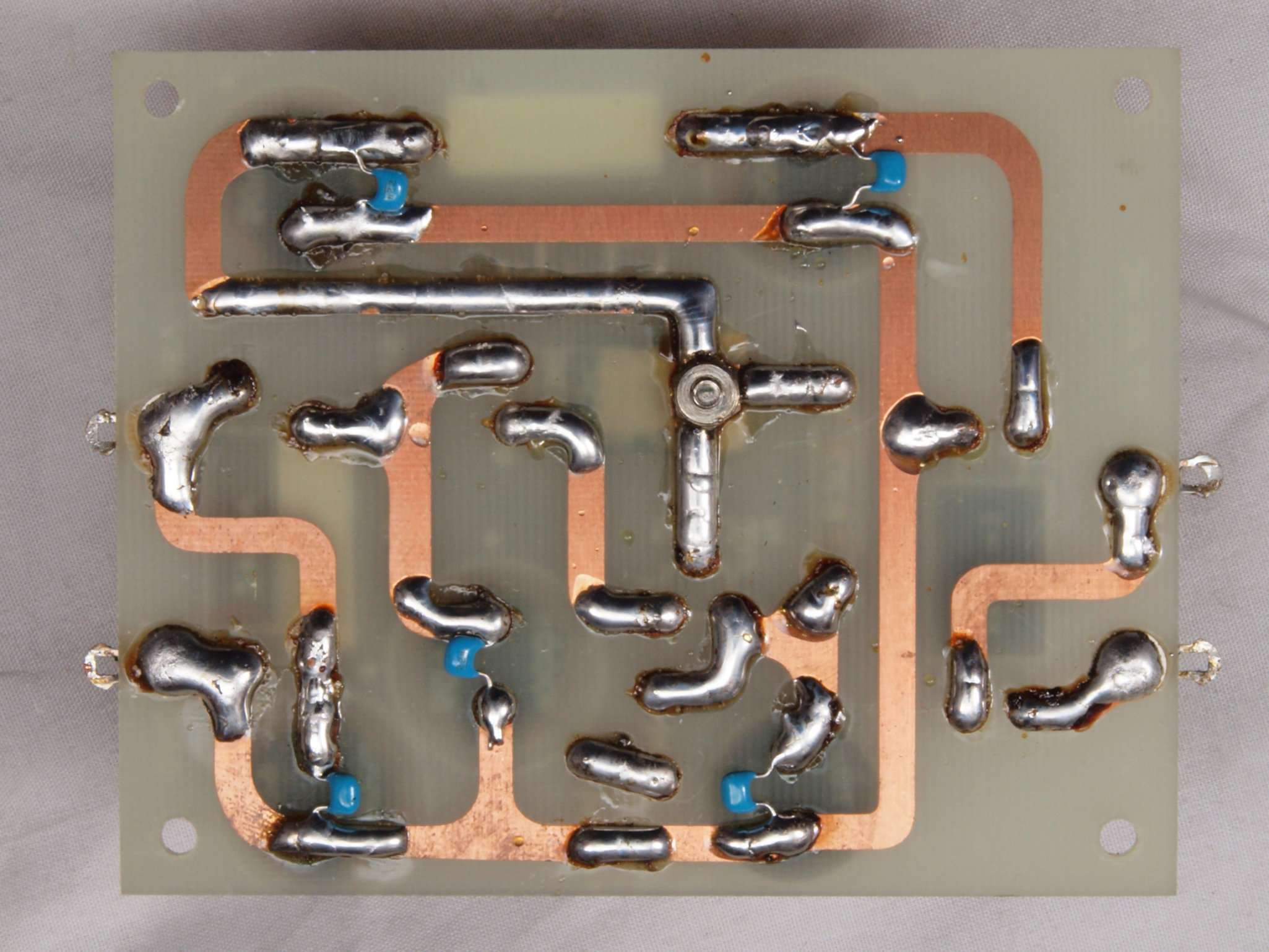 | C24. 修理(半田補正)後 左AMP基板裏 全ての半田をやり修す。フイルムコンデンサー1個、セラミックコンデンサー1個追加。 | ||||||||||||||||