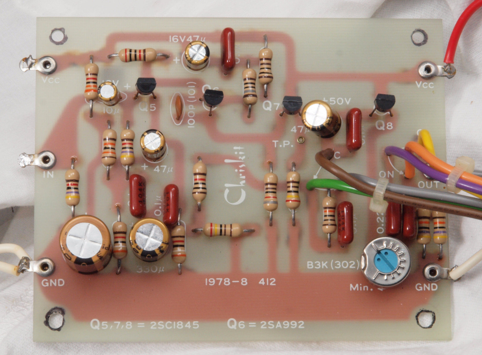 | C32. 修理後 右EQ−AMP基板 電解コンデンサー6個、TR(トランジスター)1個交換。 | ||||||||||||||||