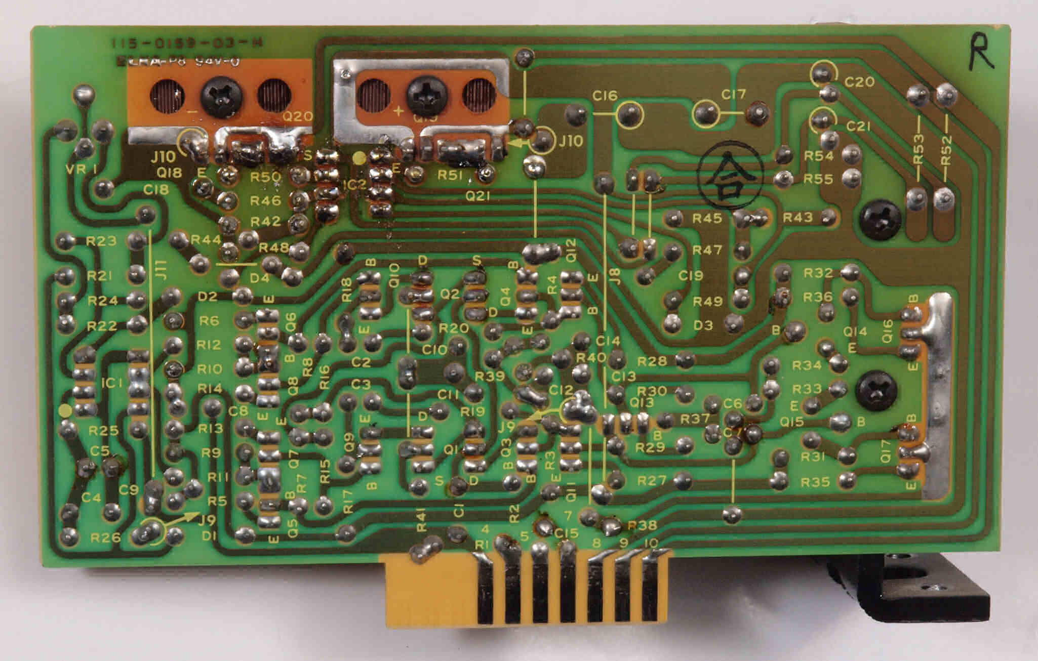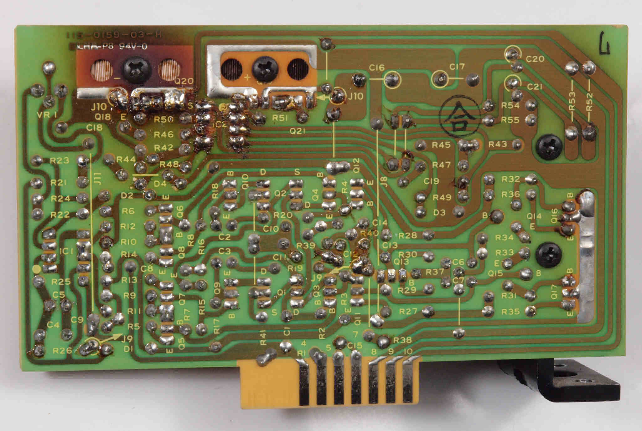 | A71. 点検中 L側EQ_AMP基板。 定電圧出力TR(トランジスター)放熱器の色が異なる、高温に焼けた。 | ||||||||||||||||||||||||||||||||||||||||||||||