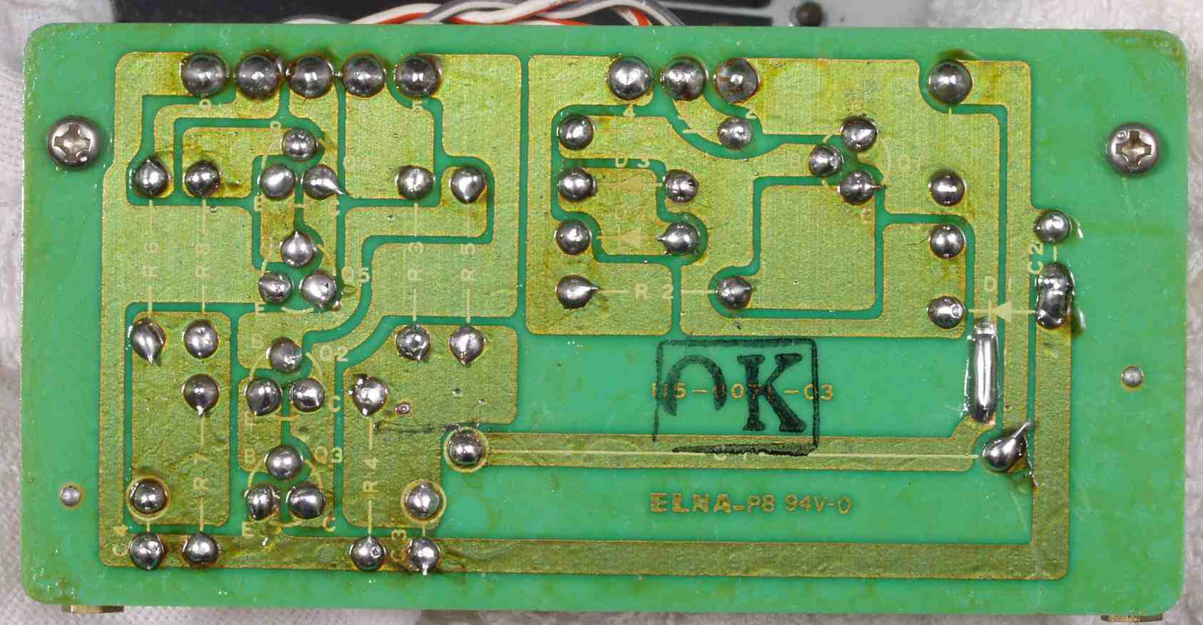| C1C2. 修理前 定電圧基板裏 腕が未熟で銅箔を切断その2 | ||||||||||||||||||||||||||||||||||||||
