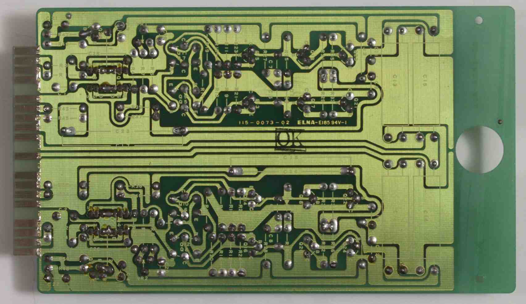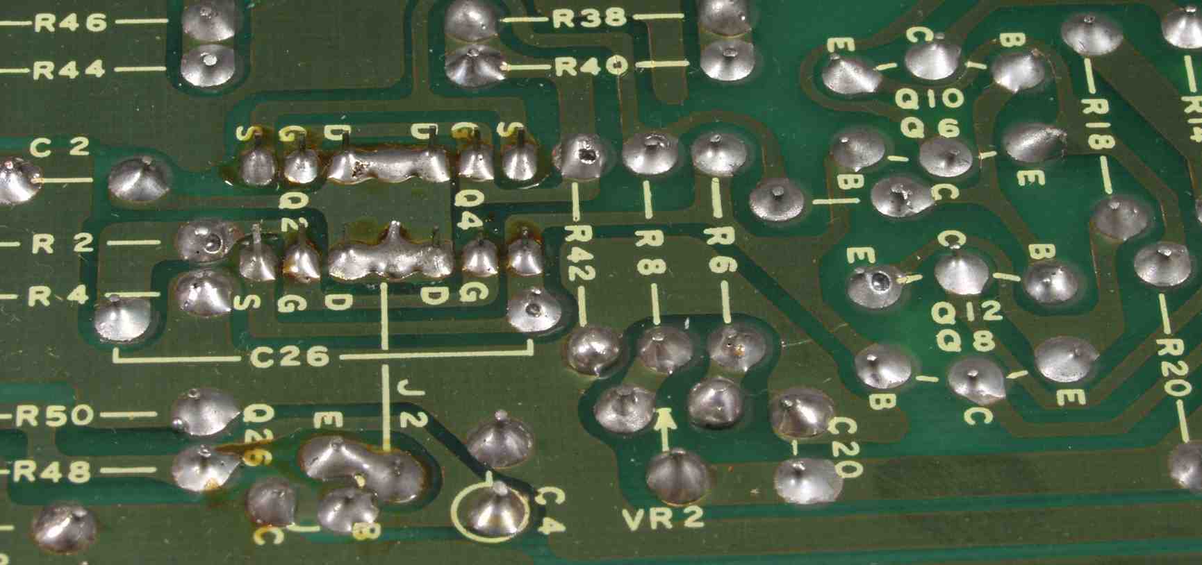 | C4C1. 修理前 BufferAMP基板裏 半田どぶ付けの時間が短く、フラックス等の蒸気で半田に穴が空いている | ||||||||||||||||||||||||||||||||||||||