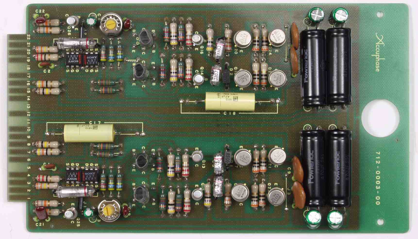 | A6. 点検中 R側・L側−AMP基板の高価な貫通電解コンデンサー | ||||||||||||||||||||||||||||||||||||||