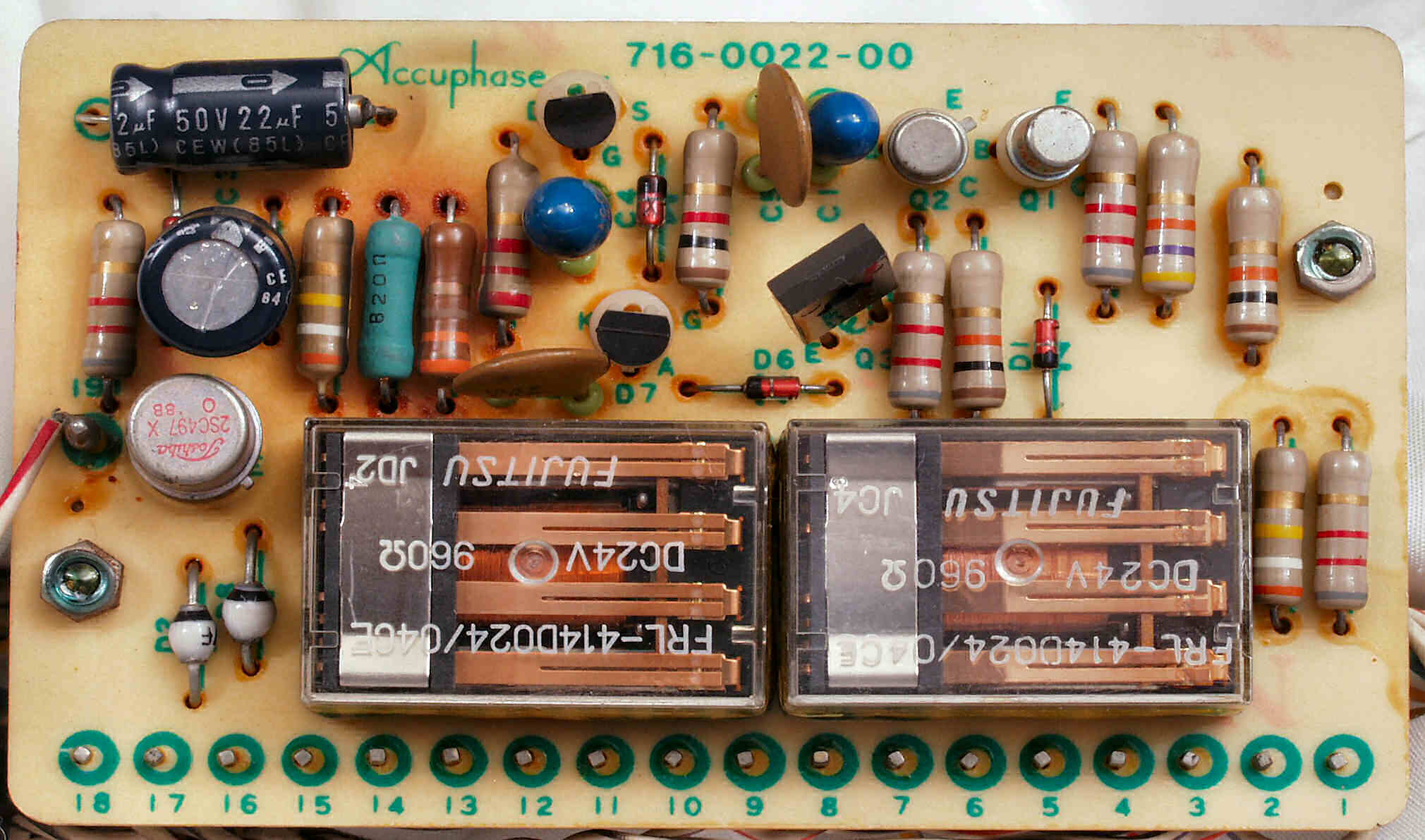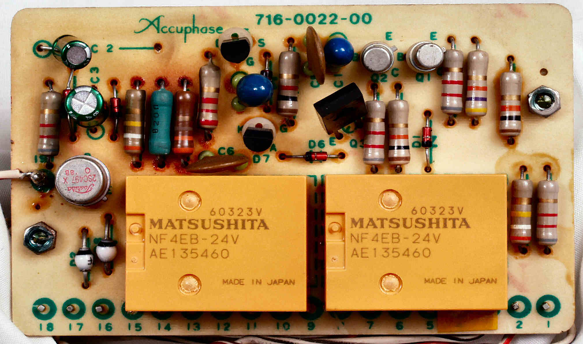 | C5B. 修理後 出力切り替え基板 電解コンデンサー2個、リレー2個交換 | ||||||||||||||||||||||||||||||||||||||