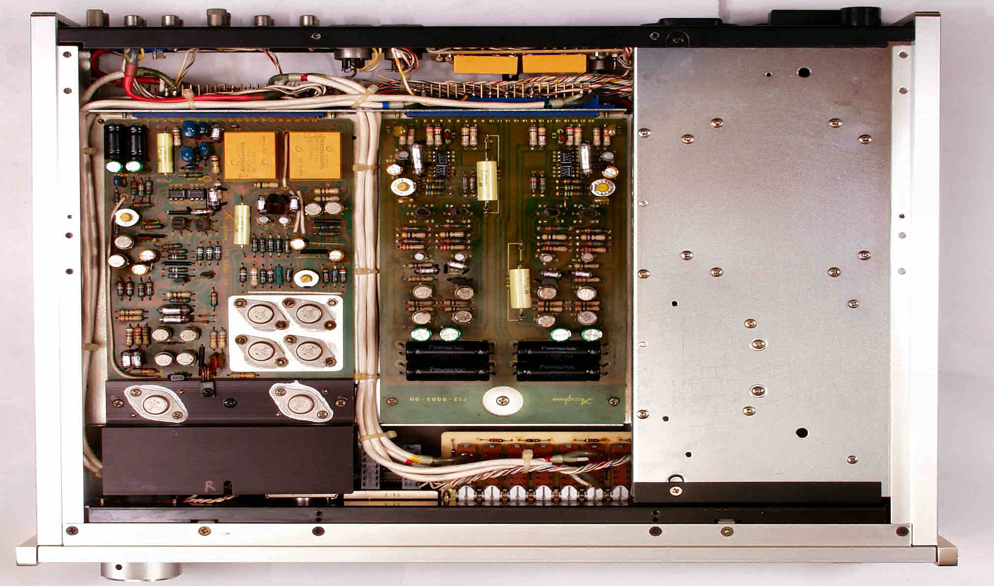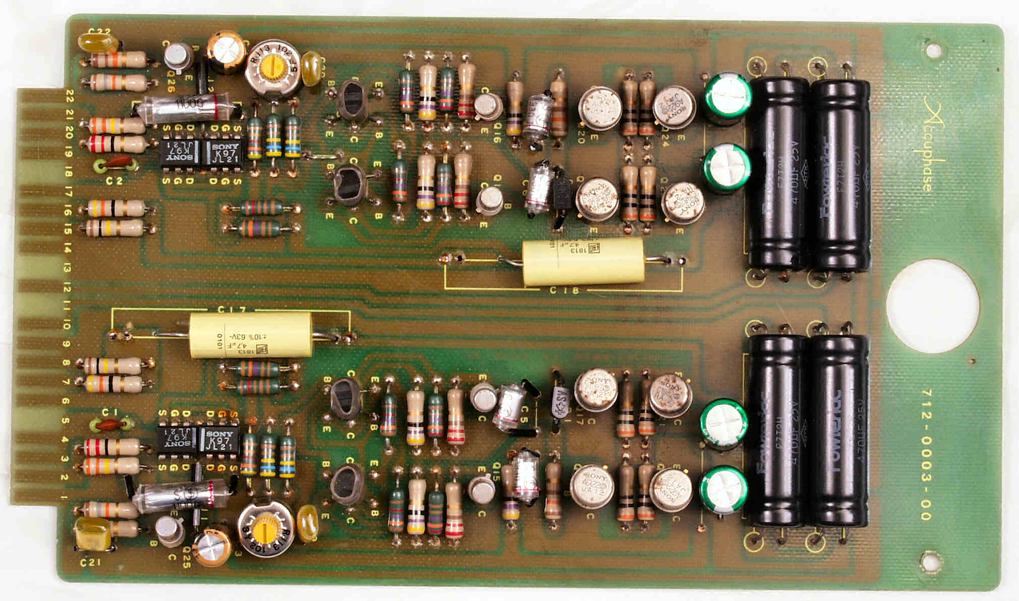 | A7. 点検中 R側・L側−AMP基板の高価な貫通電解コンデンサー | ||||||||||||||||||||||||||||||||||||||