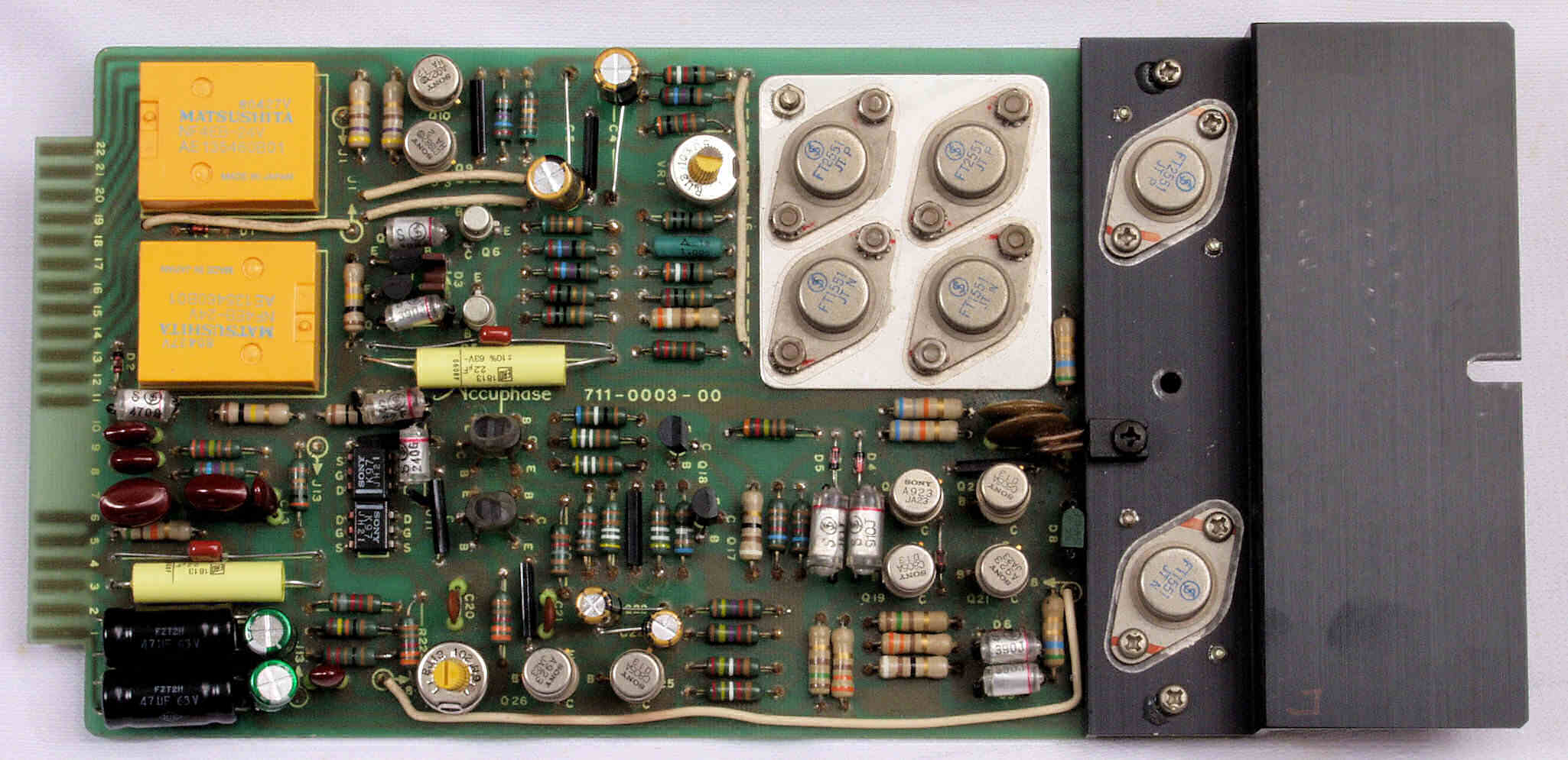 C32. 修理後 L側−AMP基板  電解コンデンサー4個、半固定VR2個、フイルムコンデンサー2個、リレー2個交換