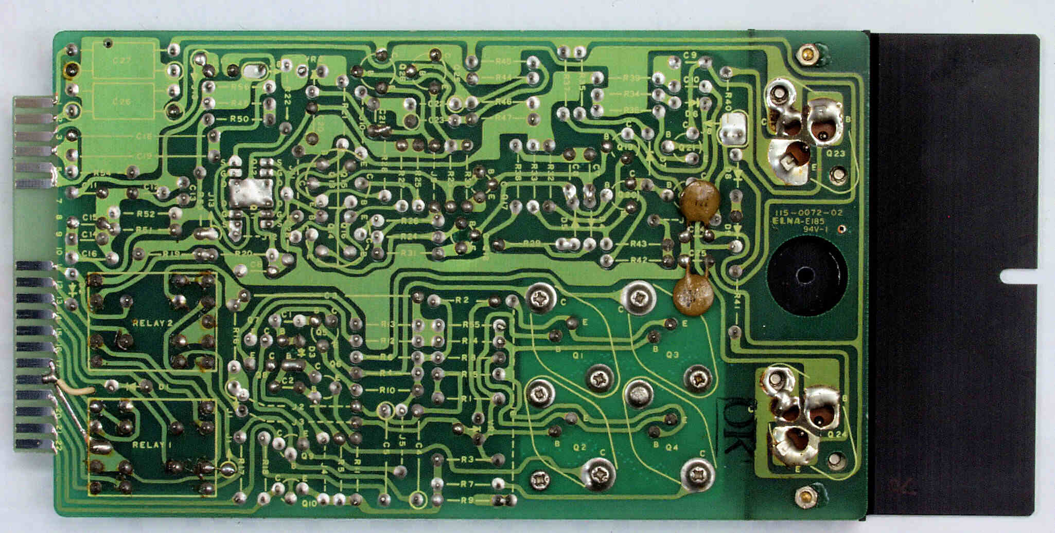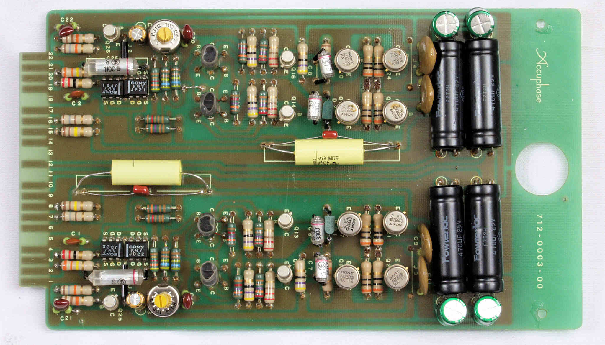 C22. 修理後 R側−AMP基板 電解コンデンサー4個、半固定VR2個、フイルムコンデンサー2個、リレー2個交換
