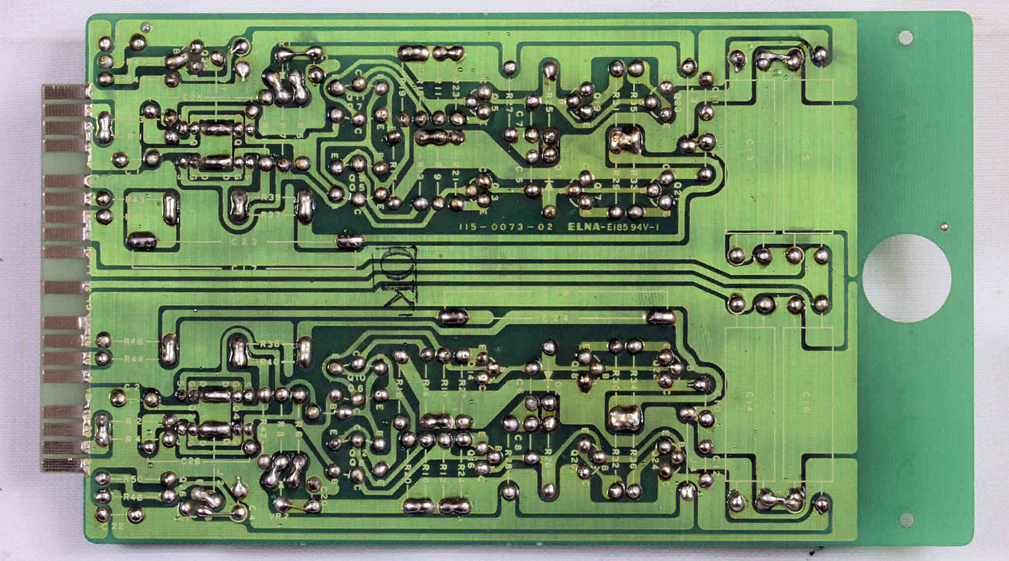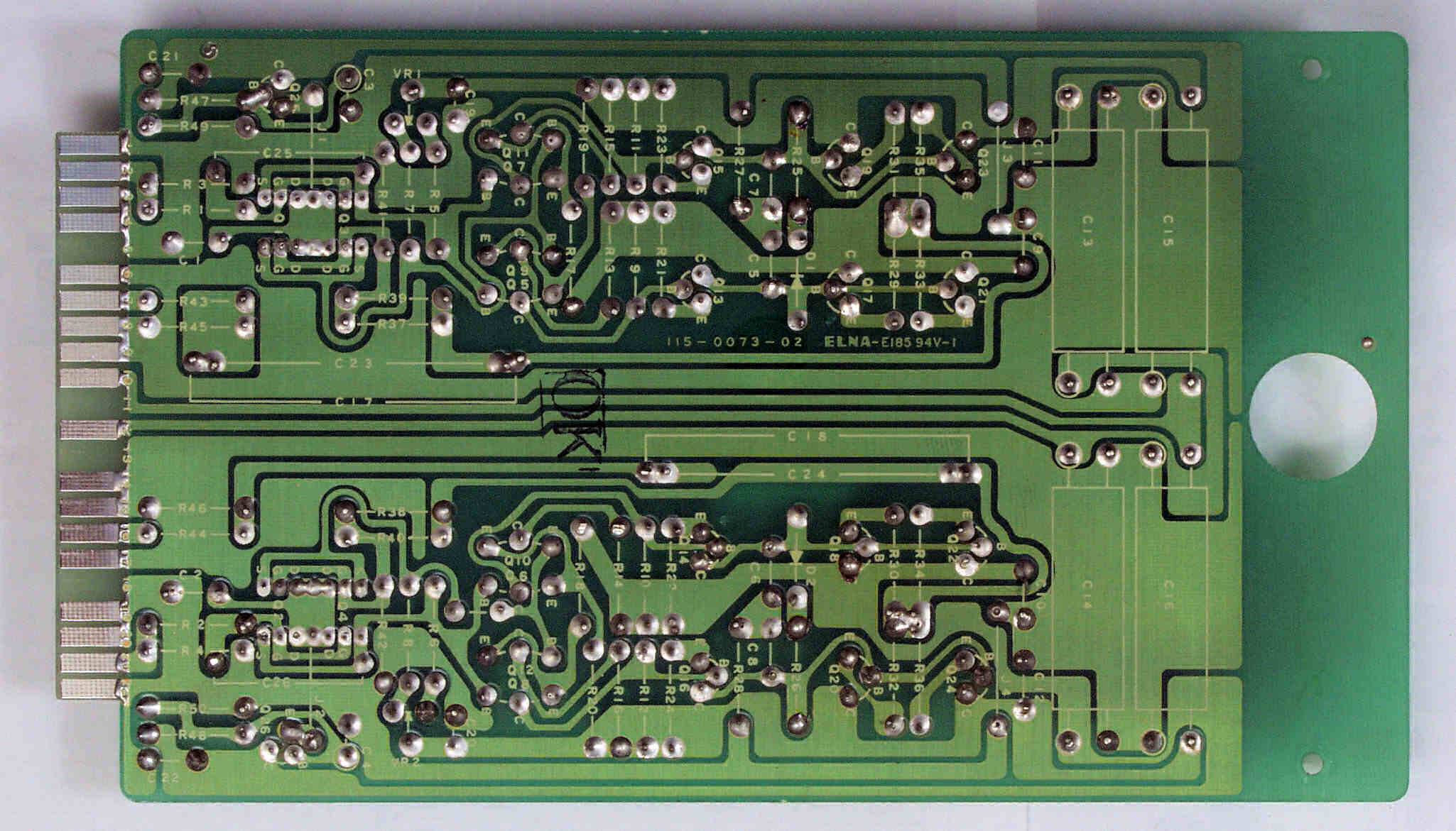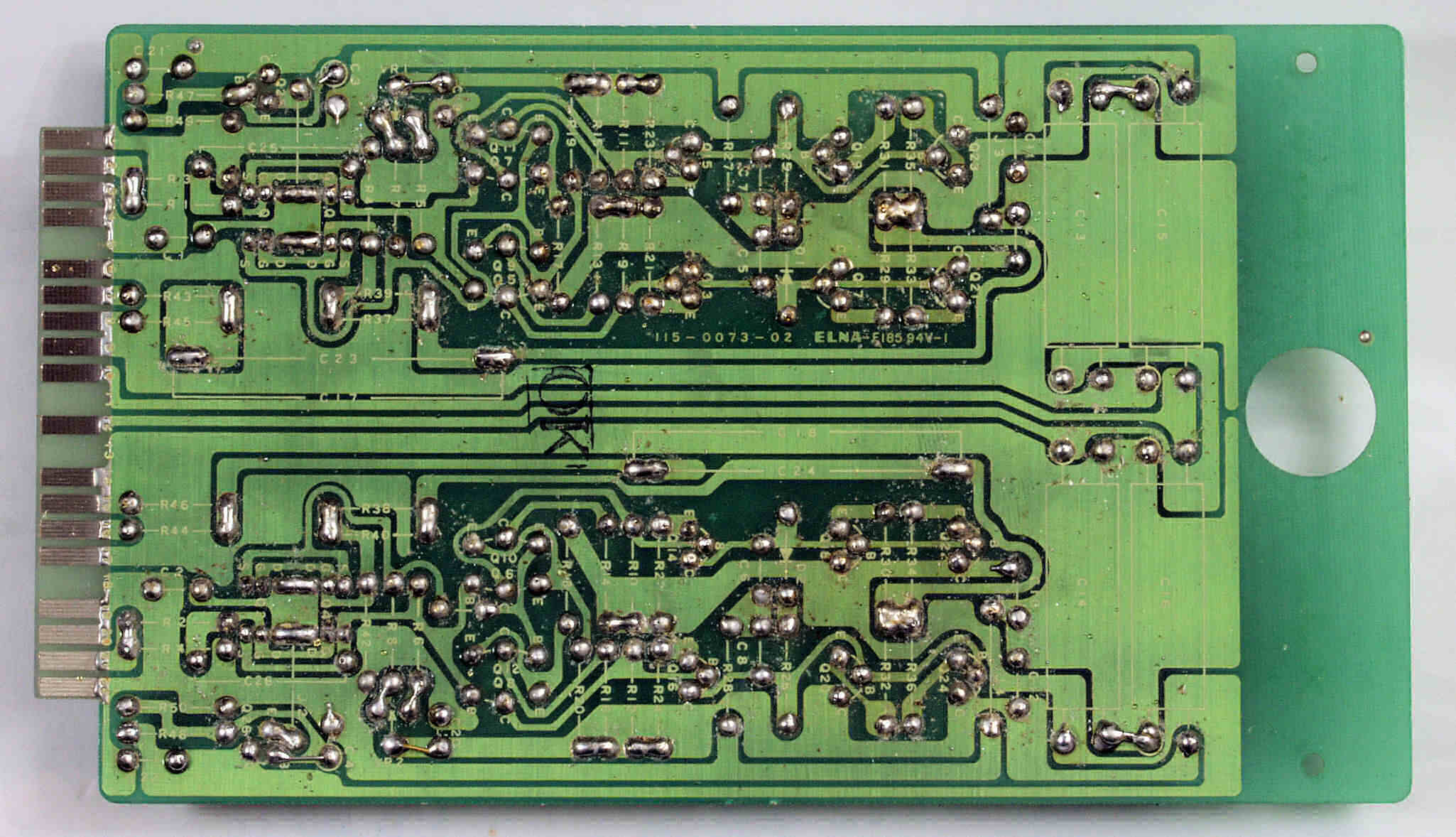 C26. 修理(半田補正)後 R側−AMP基板裏  全ての半田をやり修す