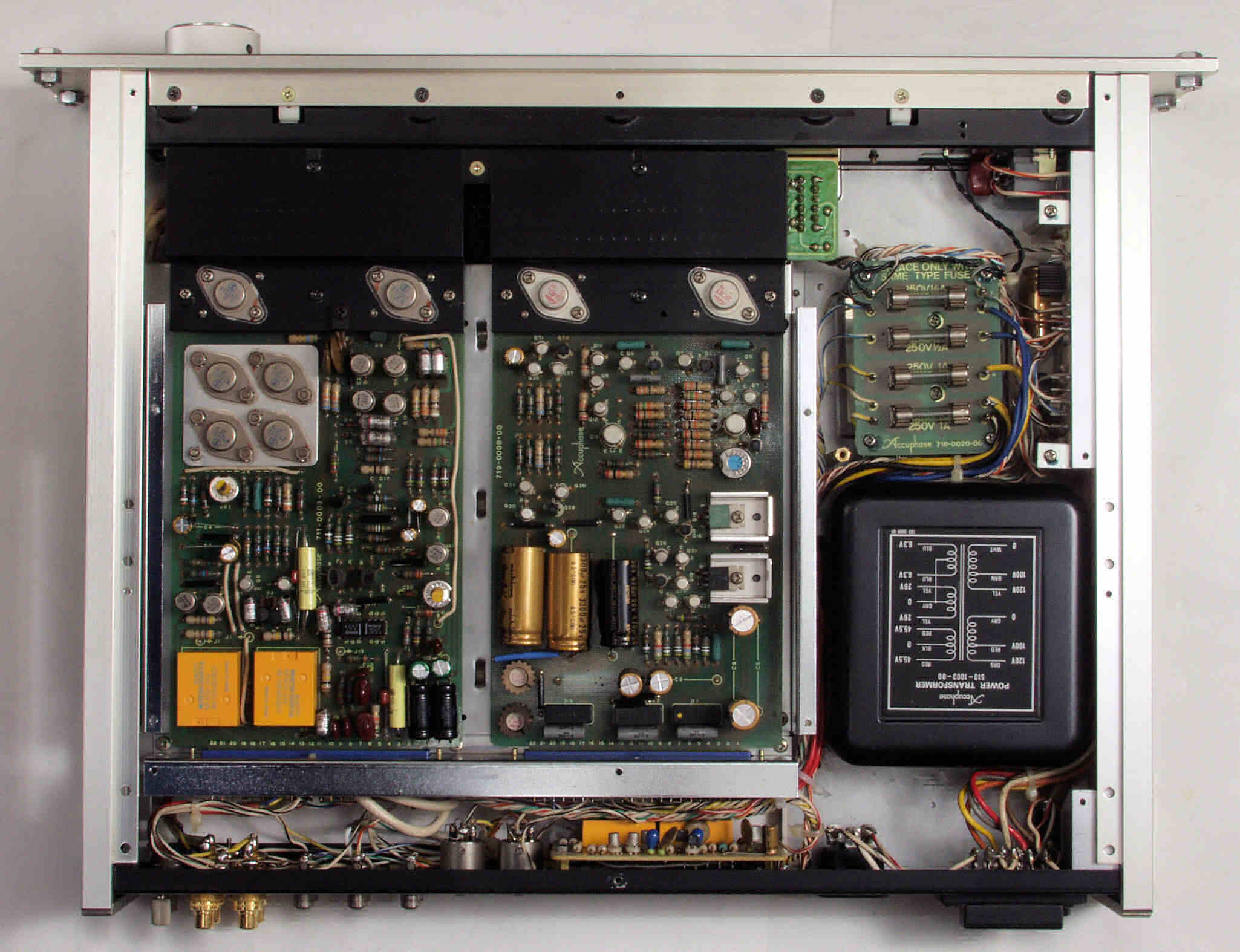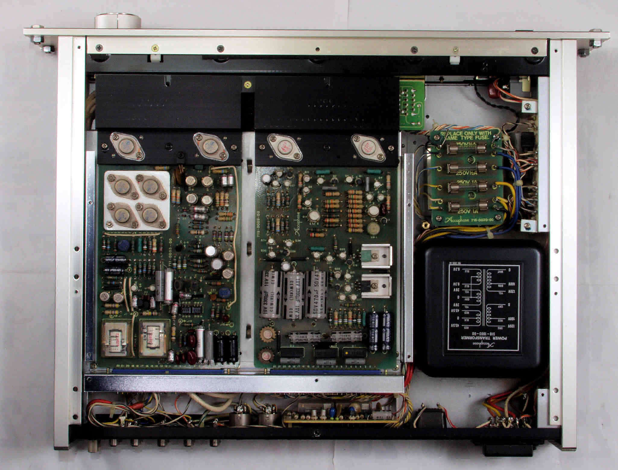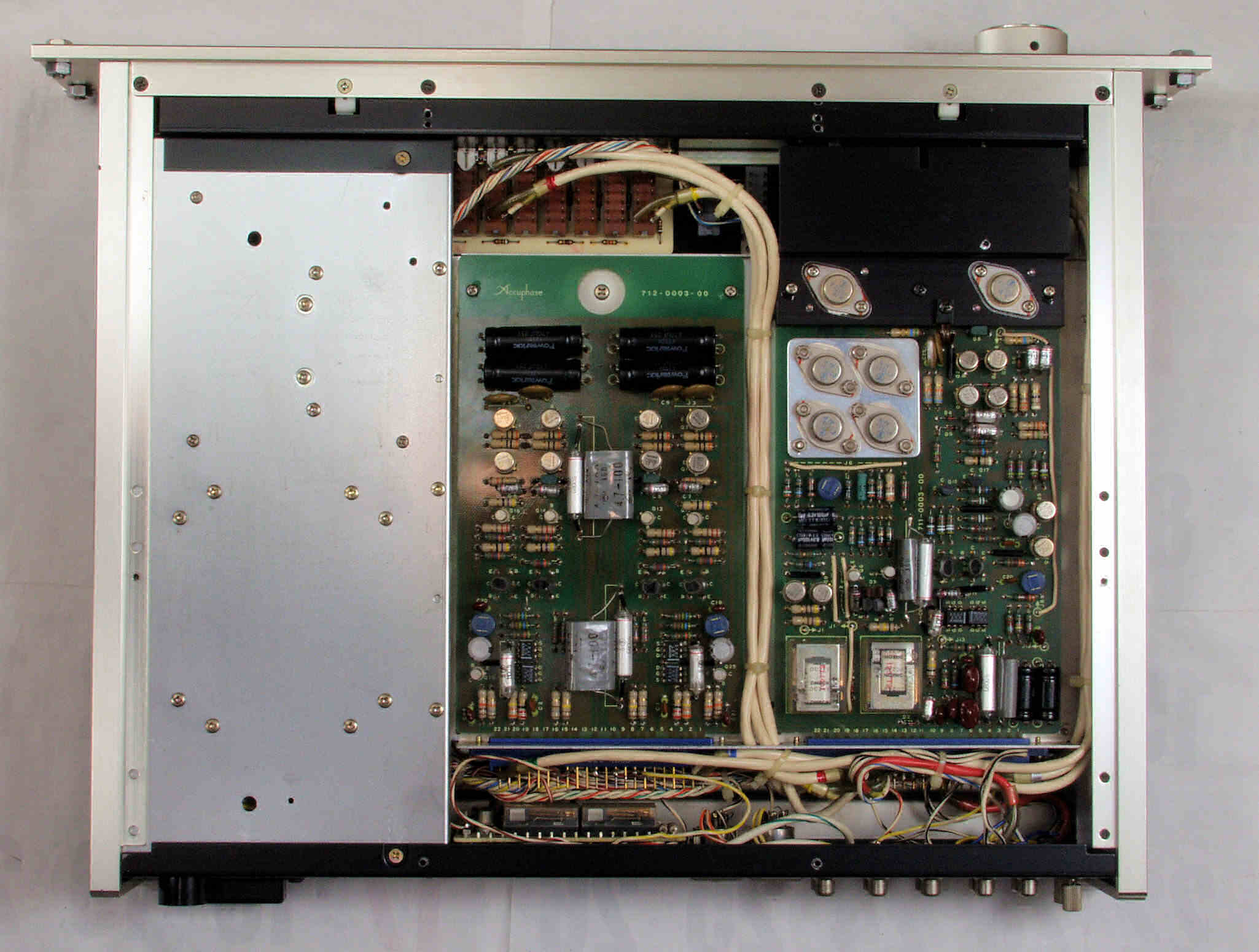 A62. 点検中 R側・L側−AMP基板の高価な貫通電解コンデンサー