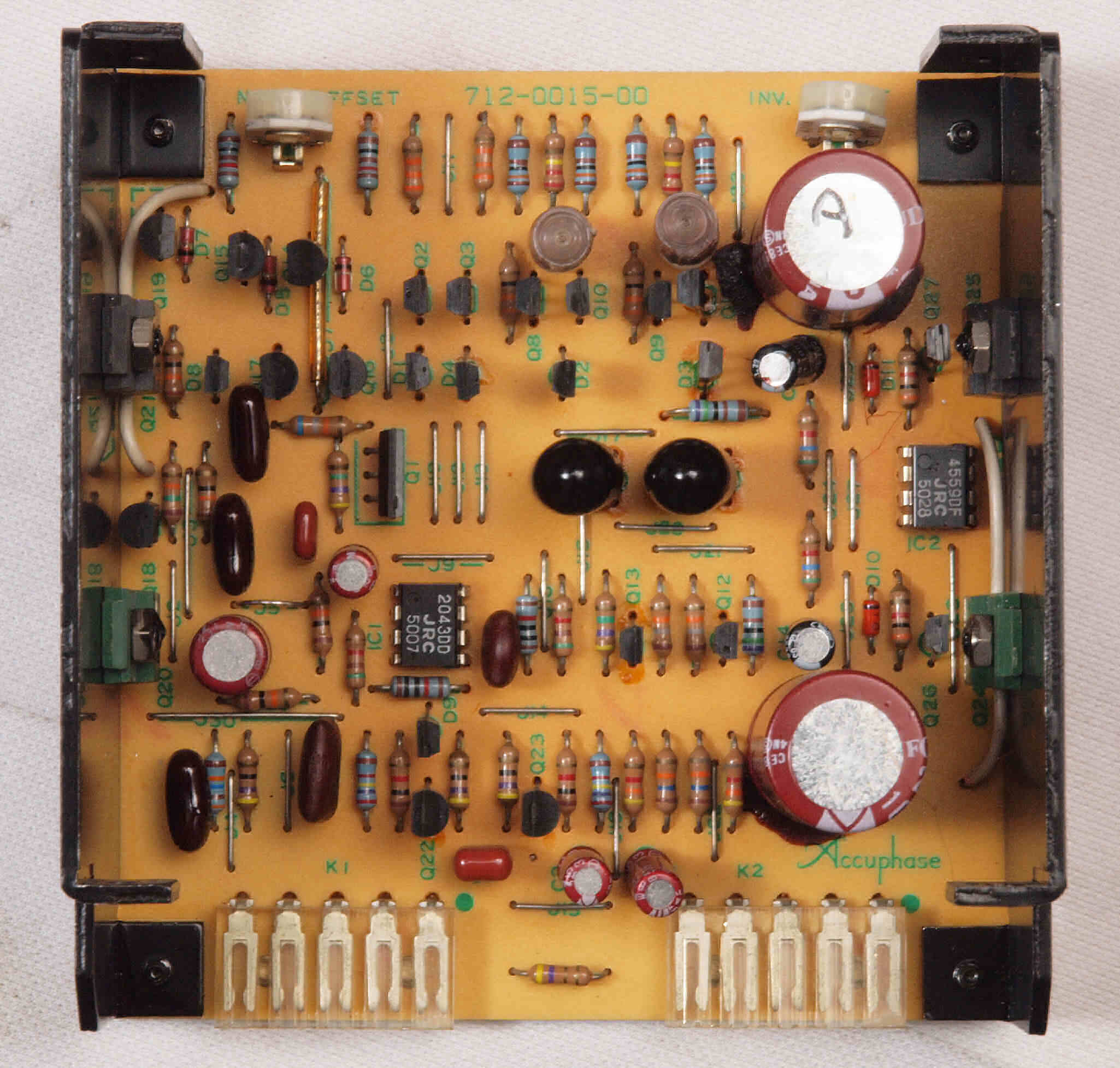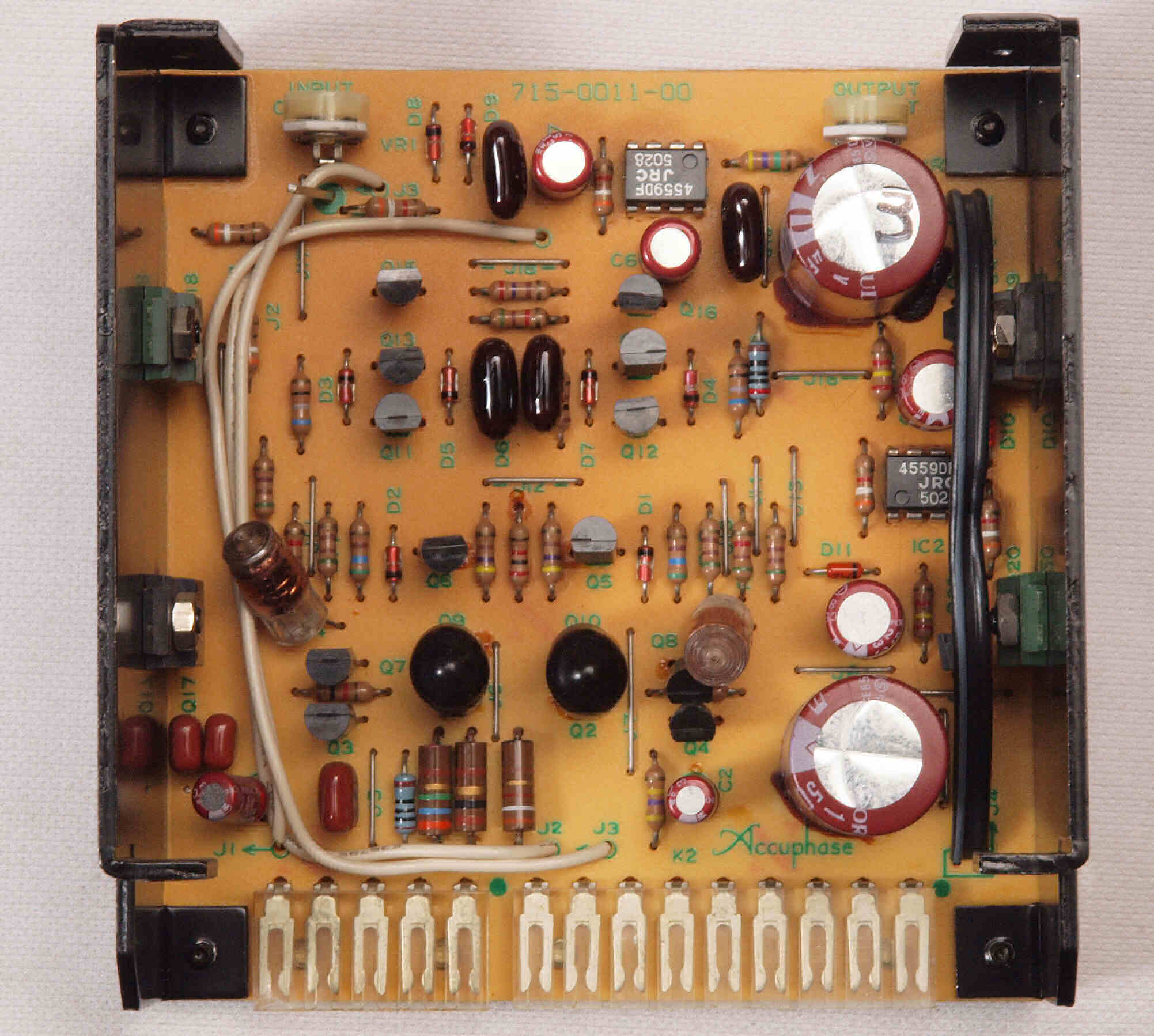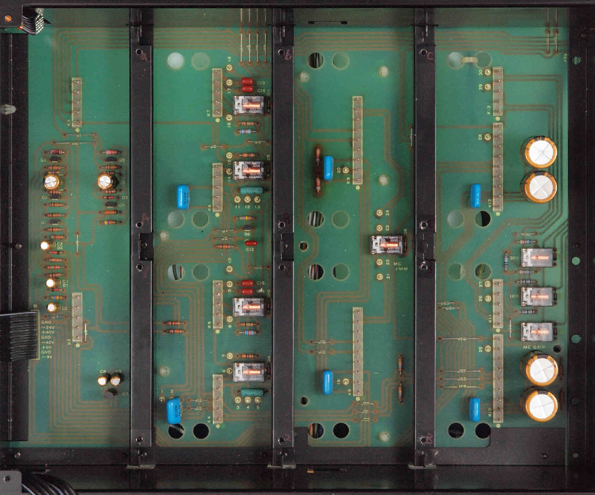 C22. 修理後 L側MC_AMP基板。OP−AMP2個、半固定VR2個、電解コンデンサー8個交換。