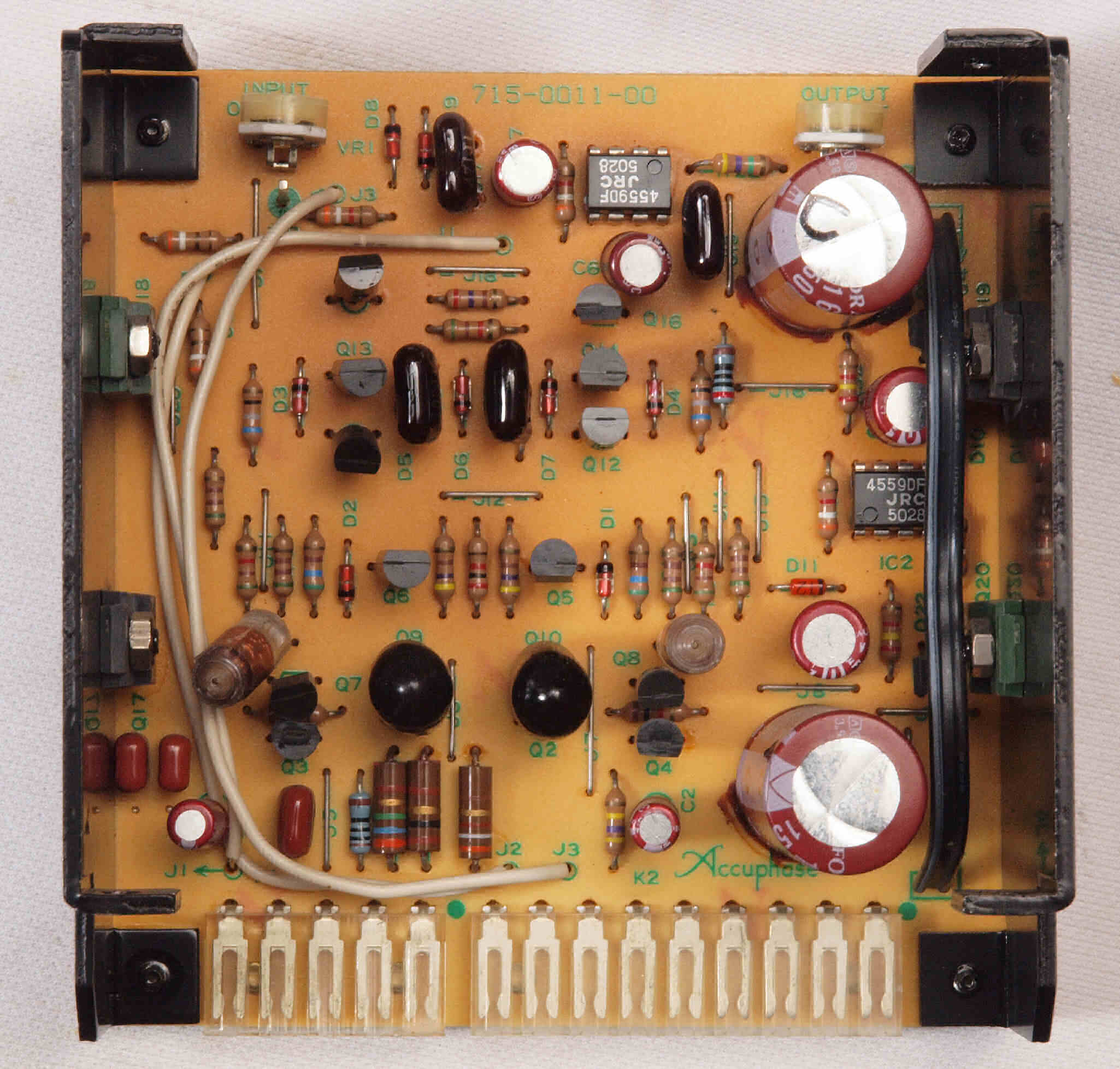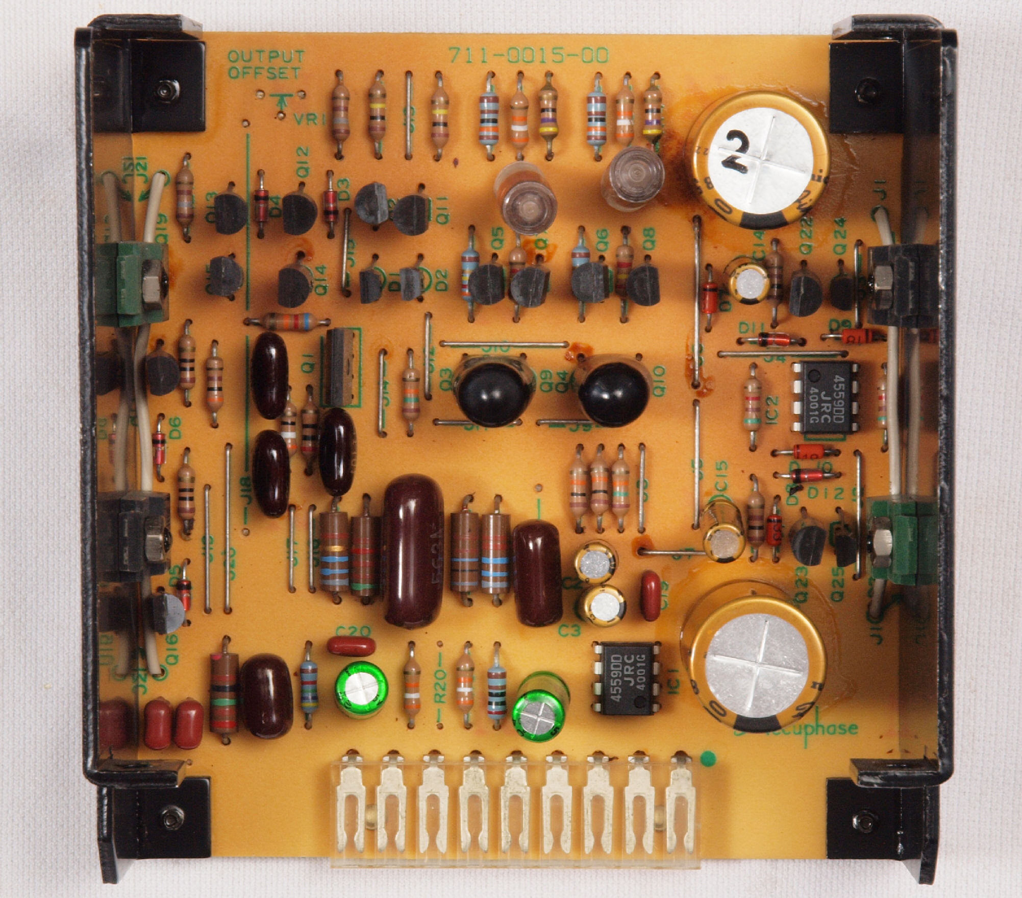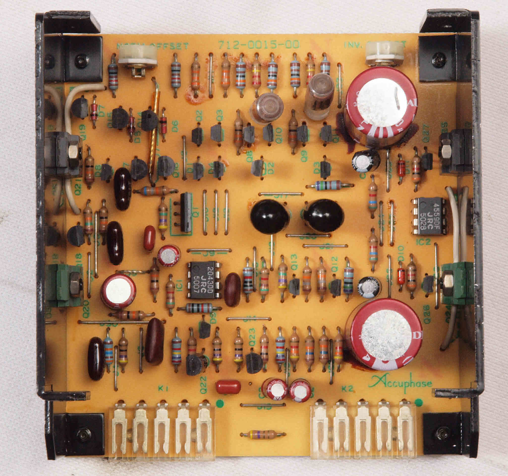 C22. 修理後 L側MC_AMP基板。OP−AMP2個、半固定VR2個、電解コンデンサー8個交換。