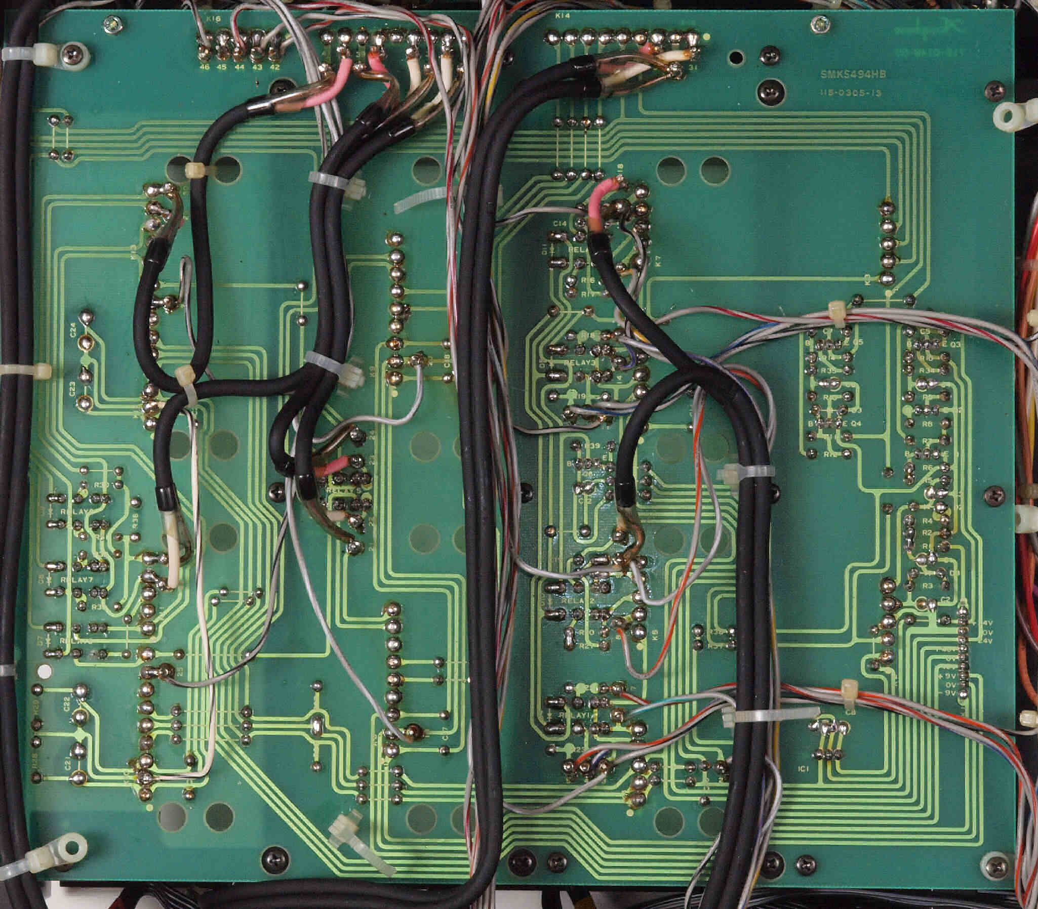 C04. 修理後 メイン基板裏。 制御リレー8個、電解コンデンサー12個交換。