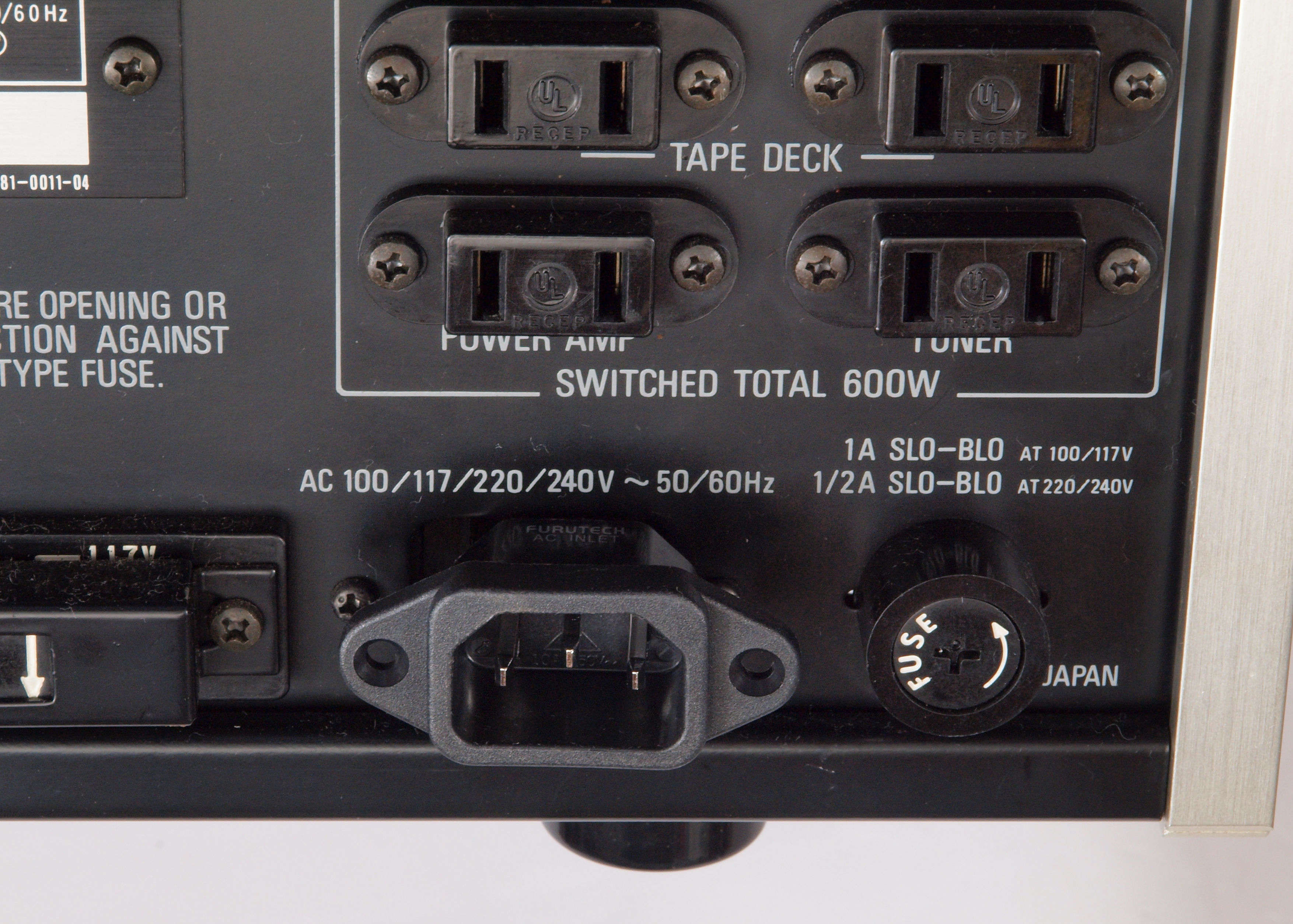 A32. 点検中 電源コード取り、3Pインレットに交換可能、今回交換見送り。 FURUTECH FI-10(R) ロジウムメッキ使用。