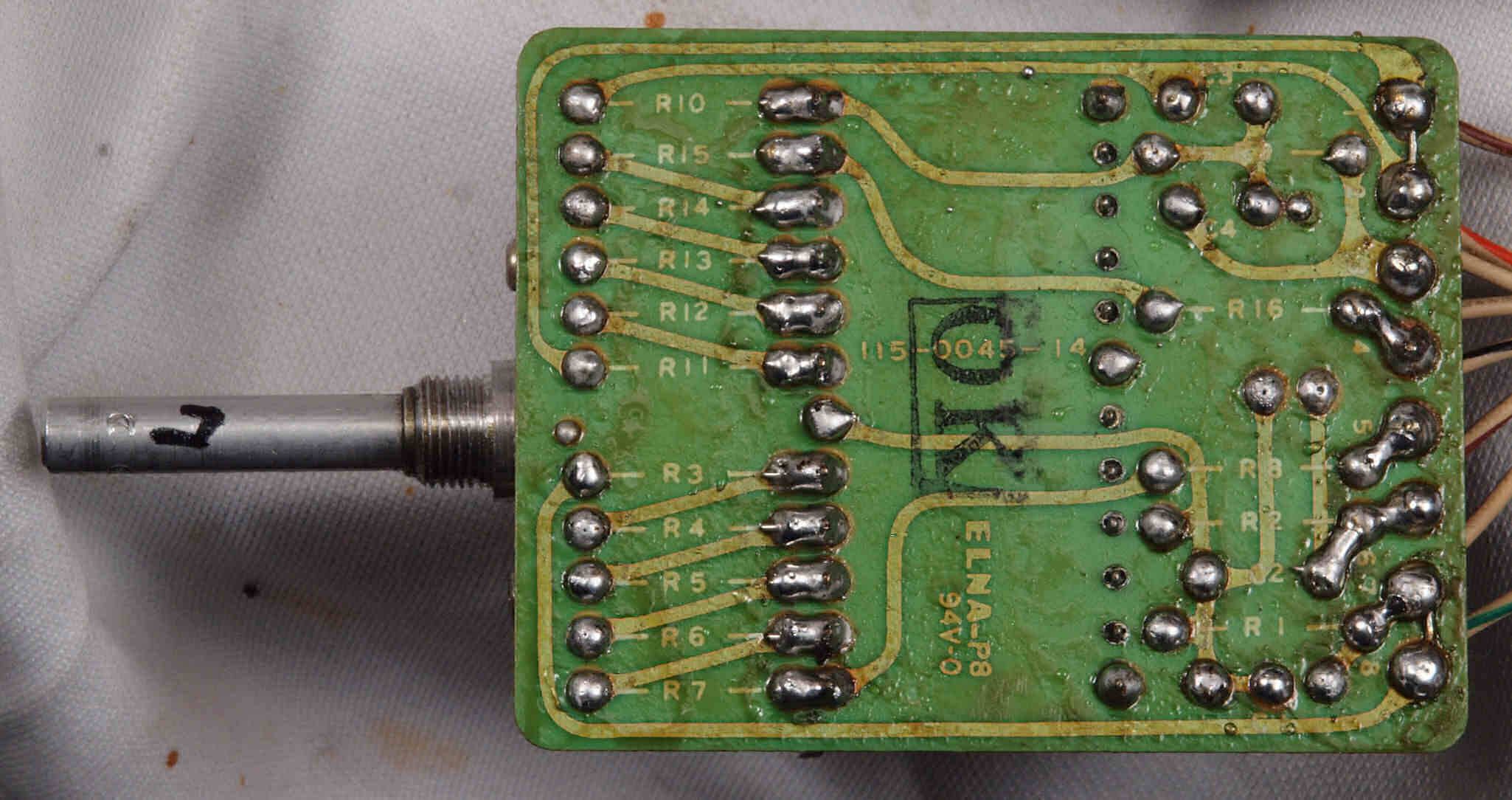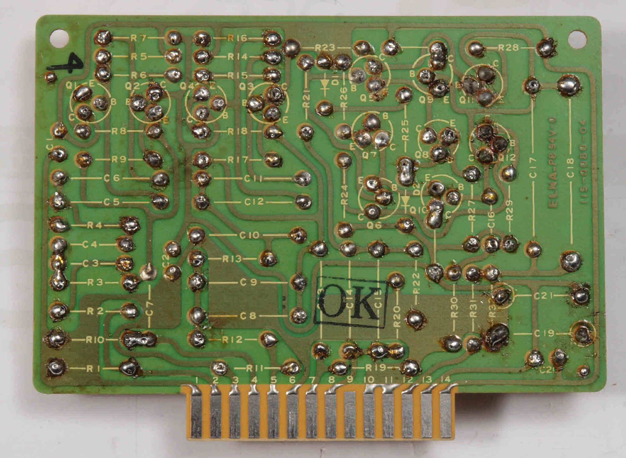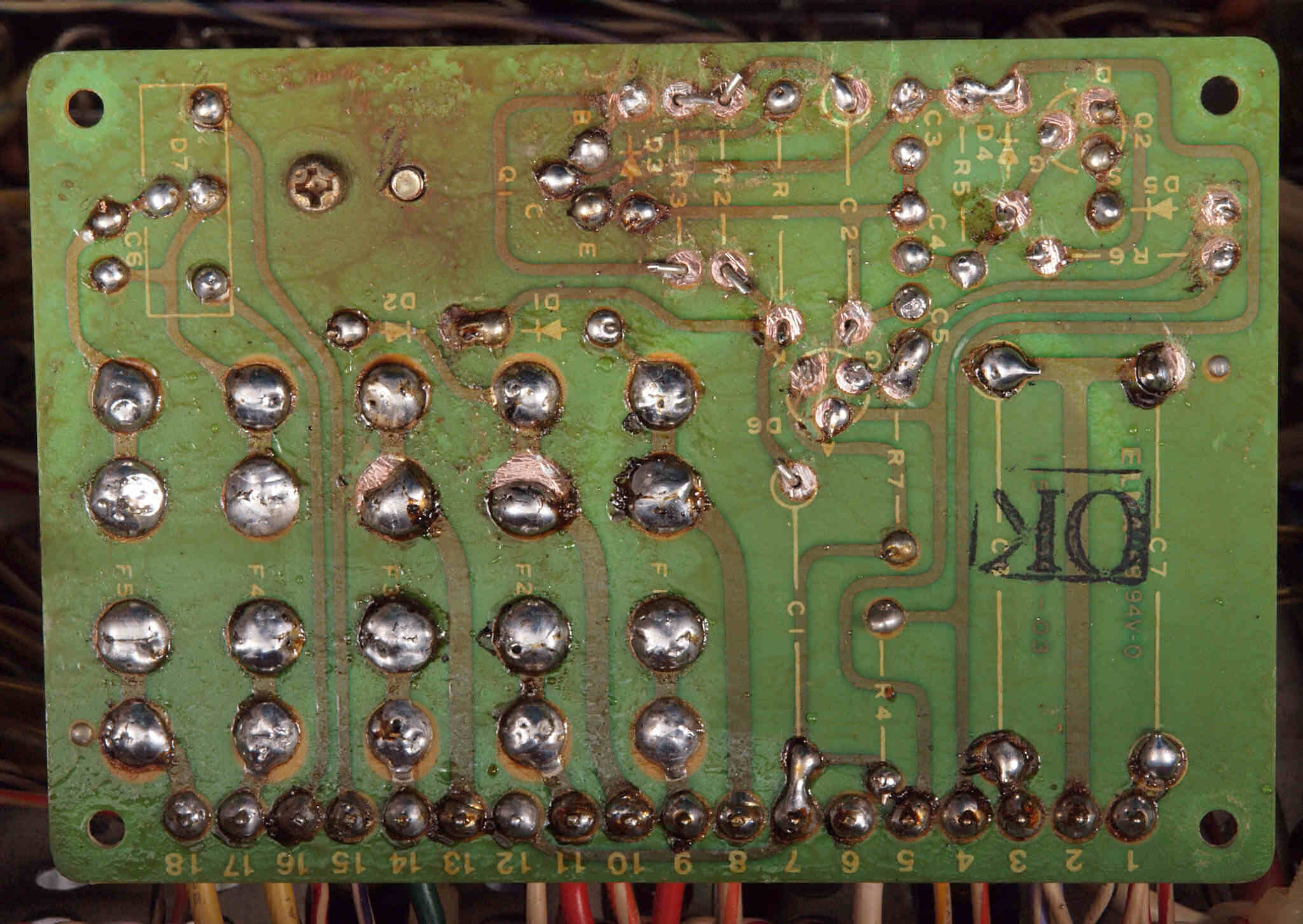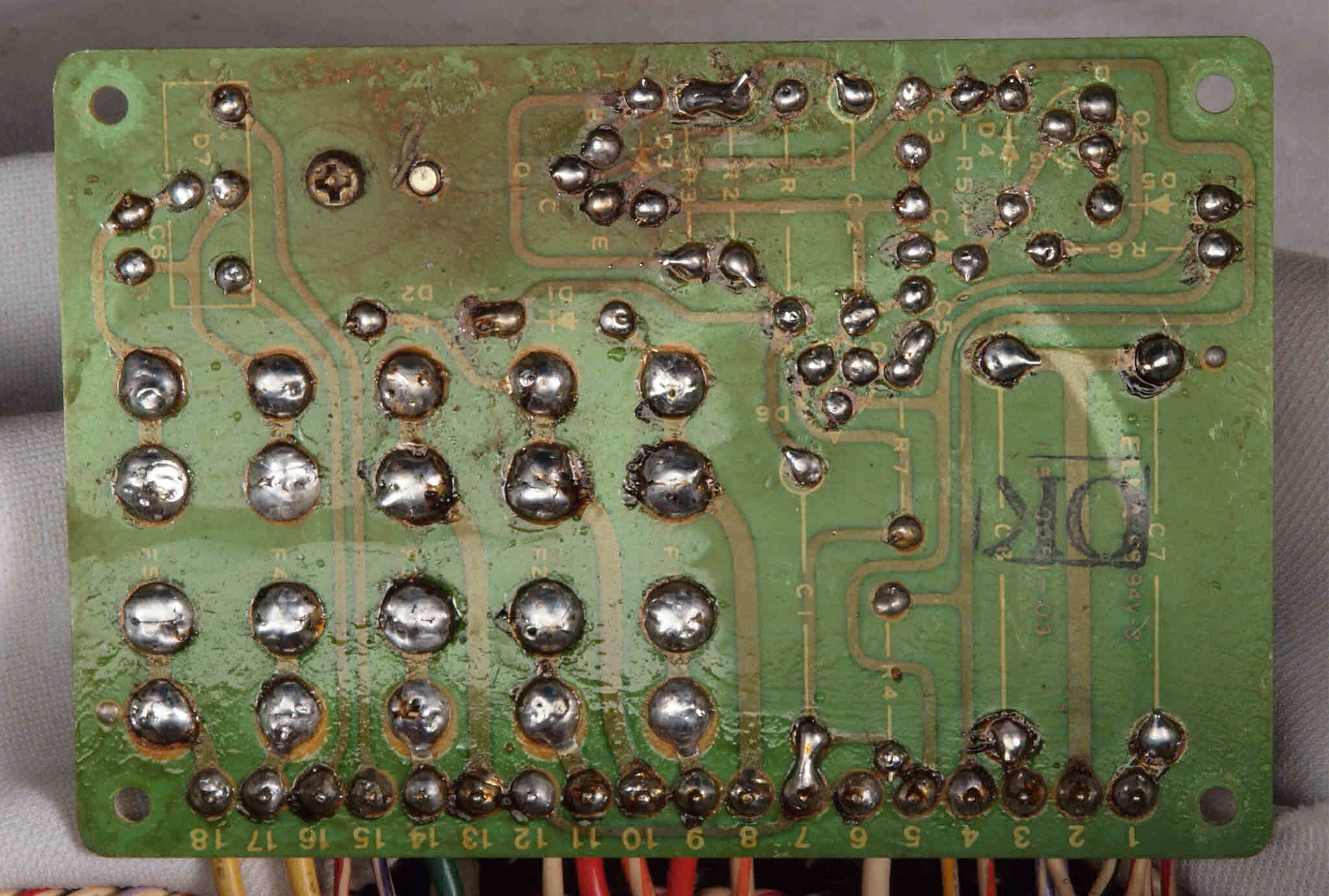 C14. 修理(半田補正)後 R側EQ_AMP基板裏。 半田を全部やり直す。