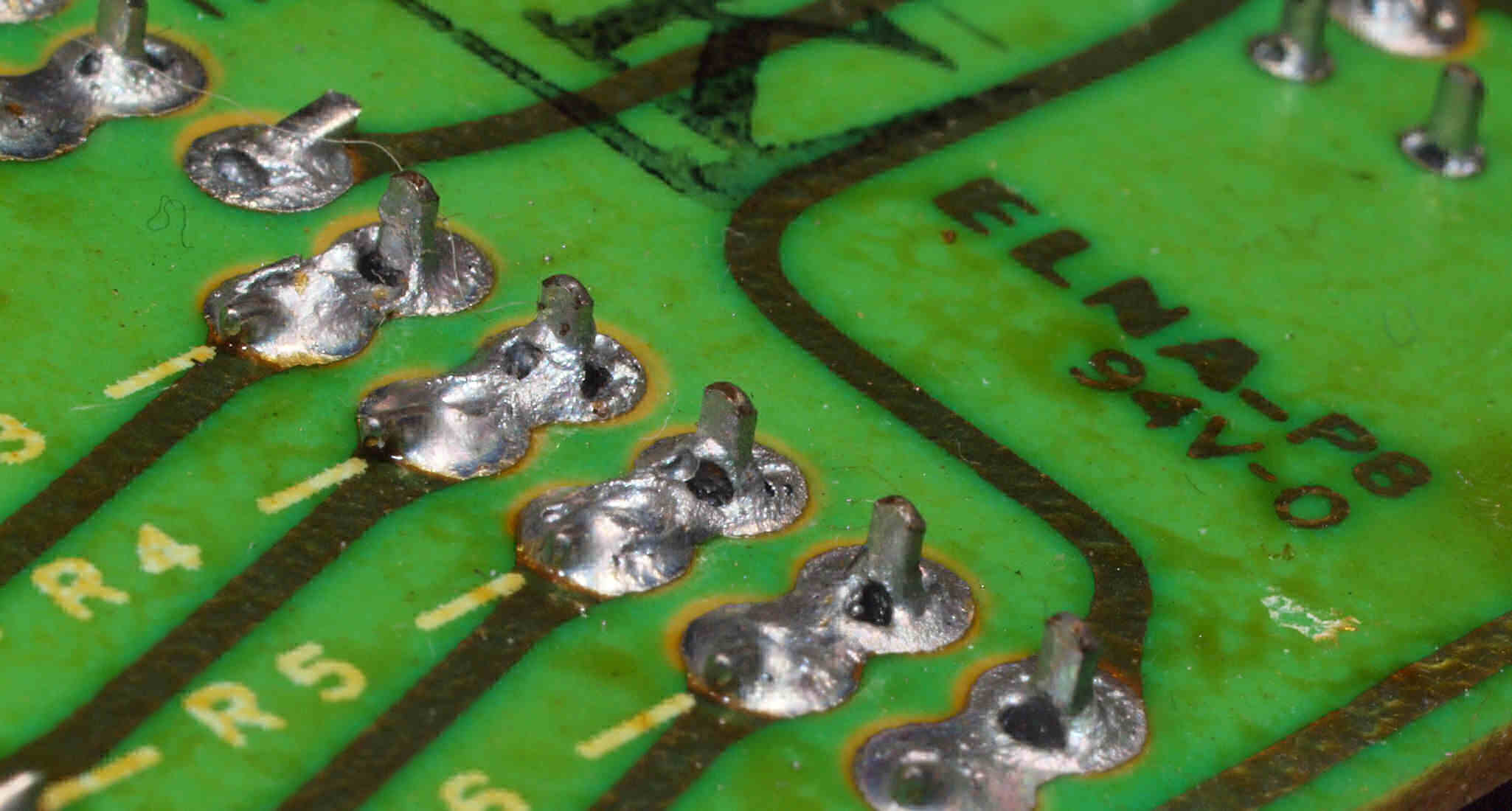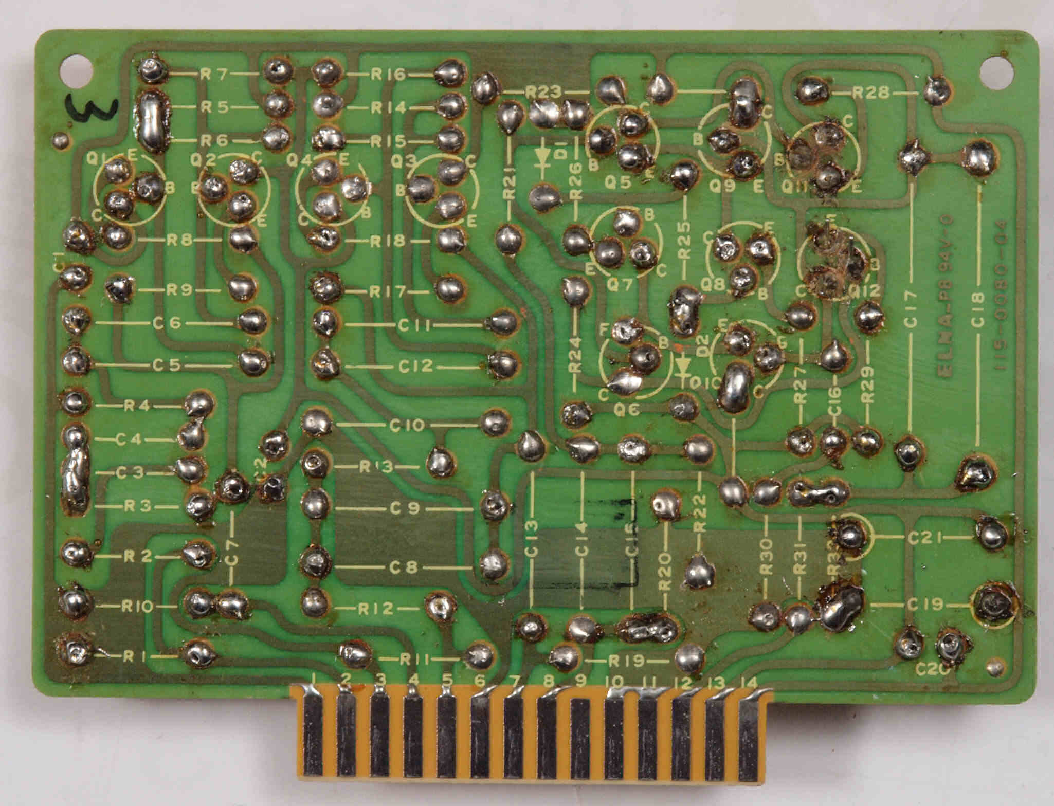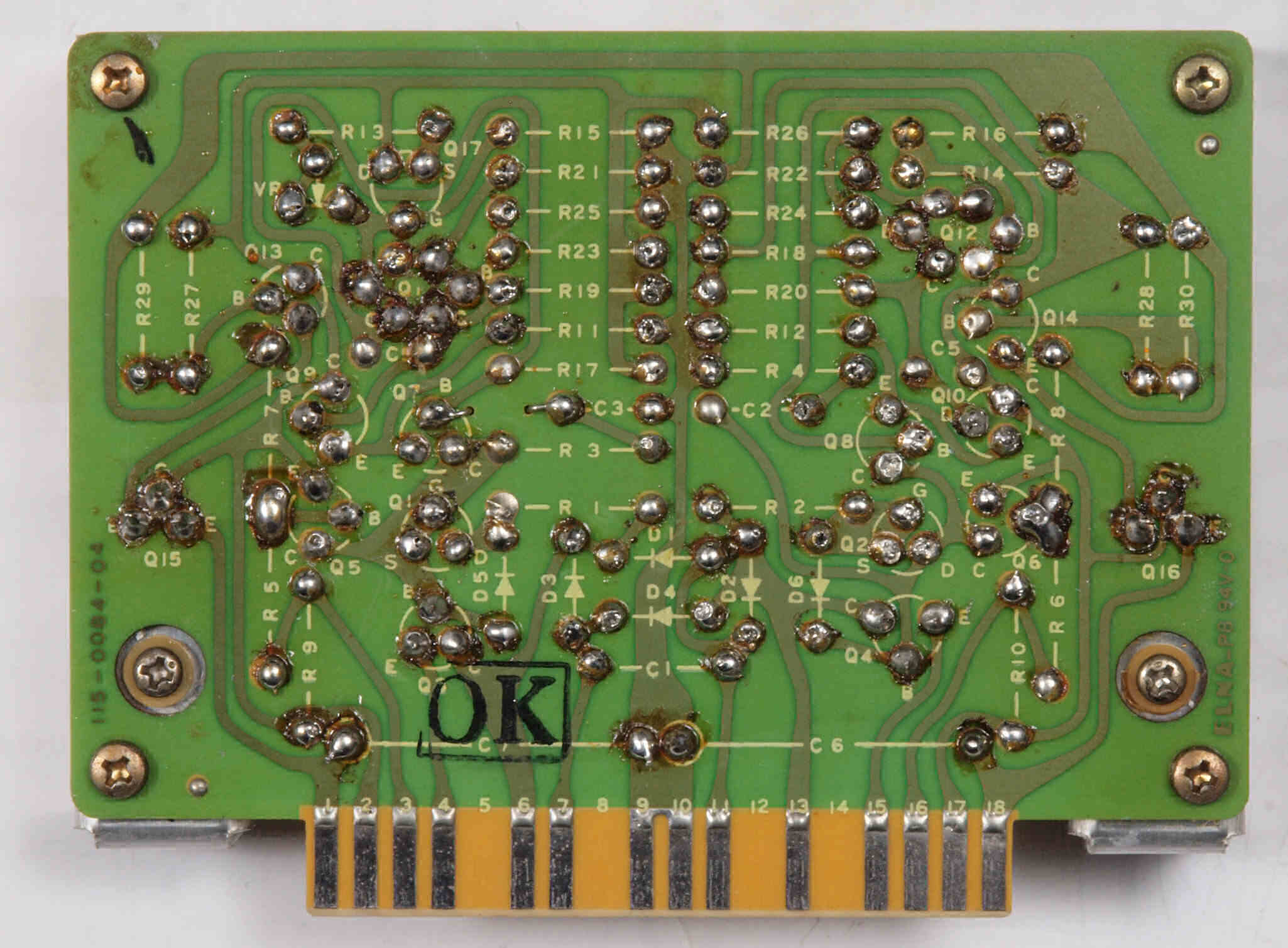C14. 修理(半田補正)後 R側EQ_AMP基板裏。 半田を全部やり直す。