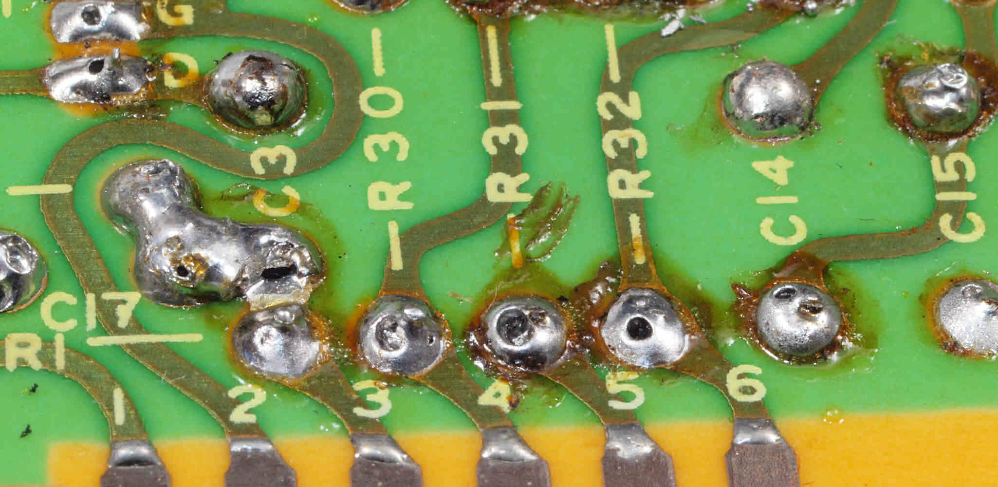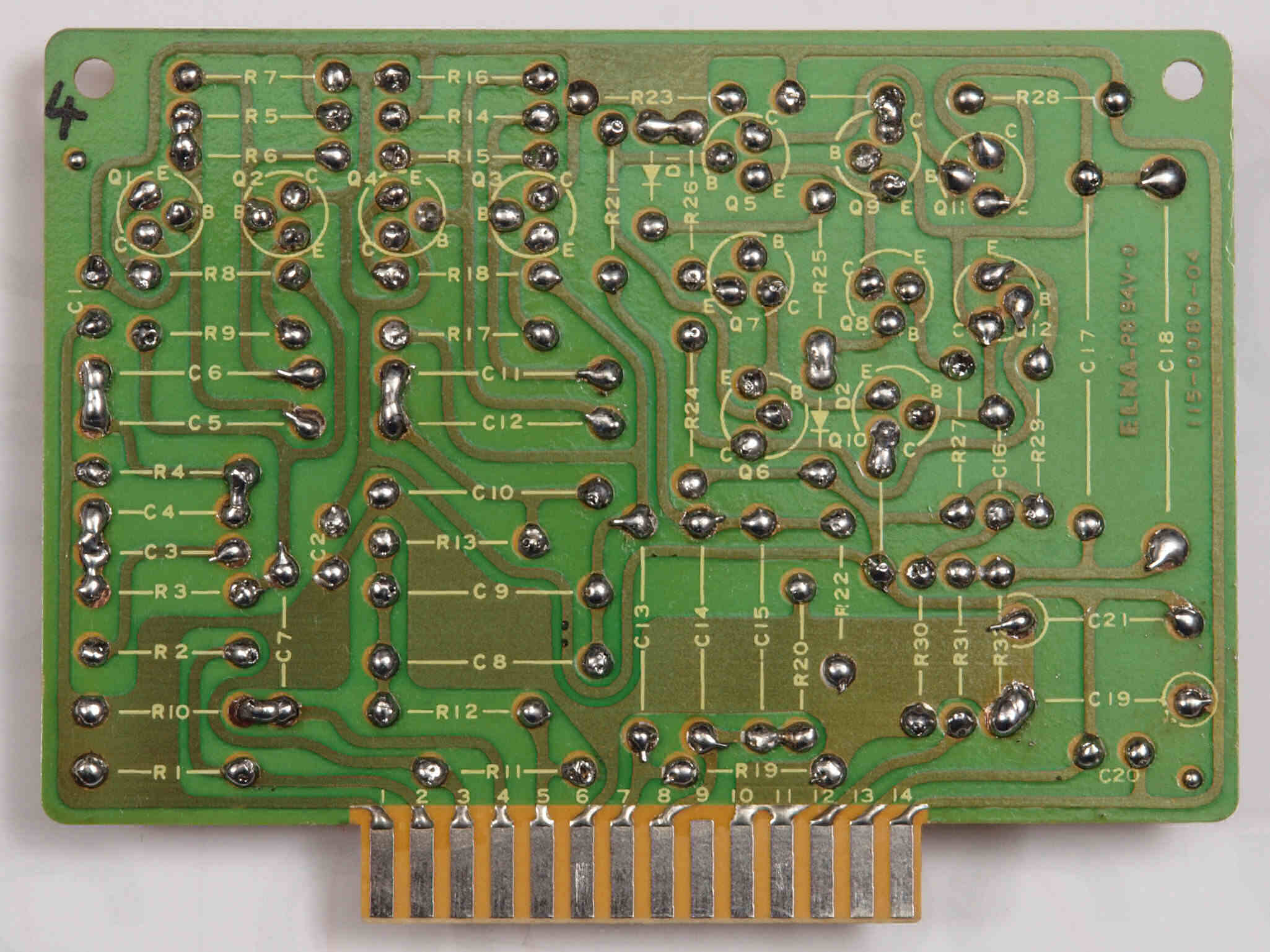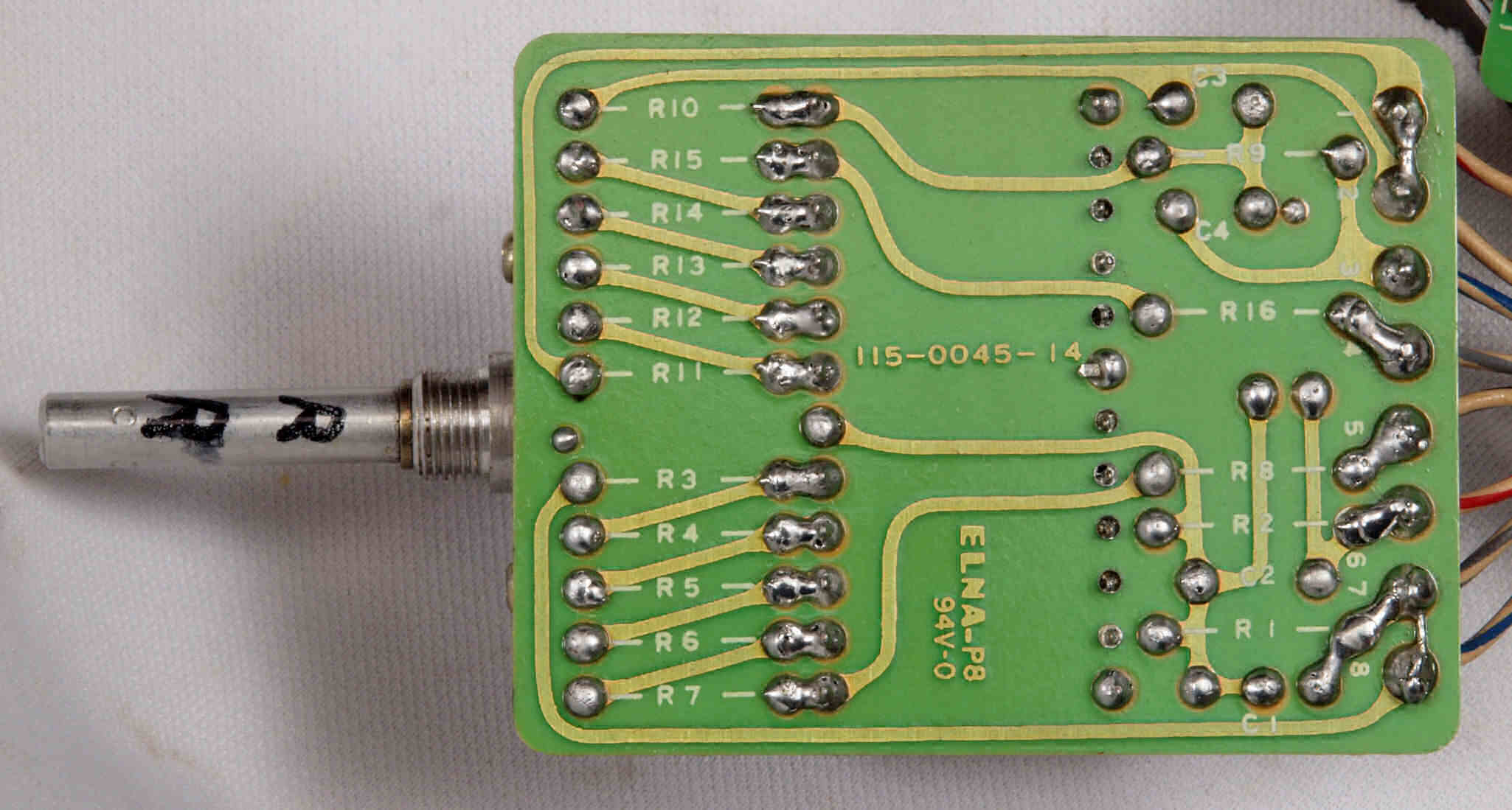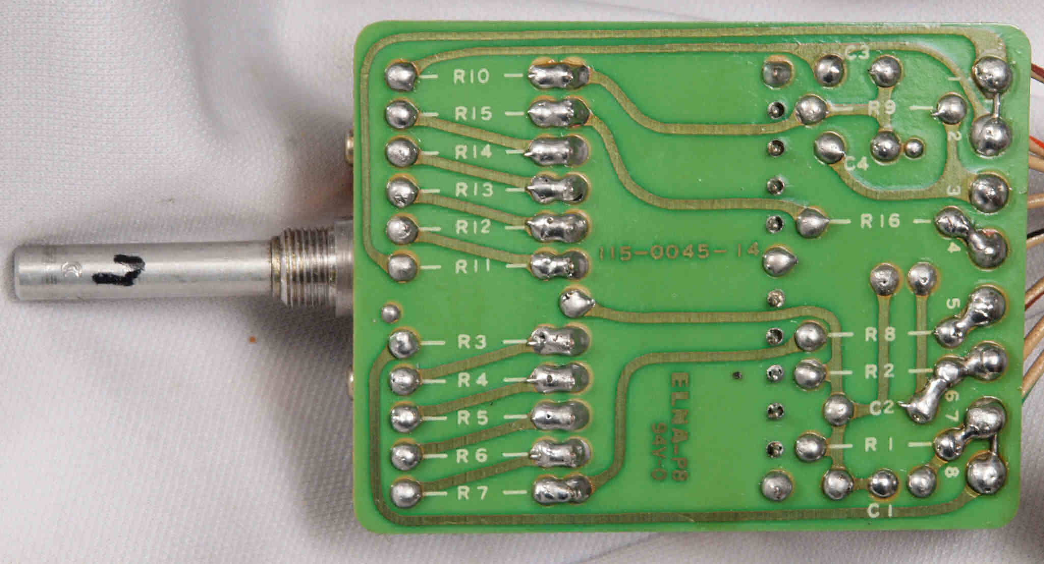 C14. 修理(半田補正)後 R側EQ_AMP基板裏。 半田を全部やり直す。