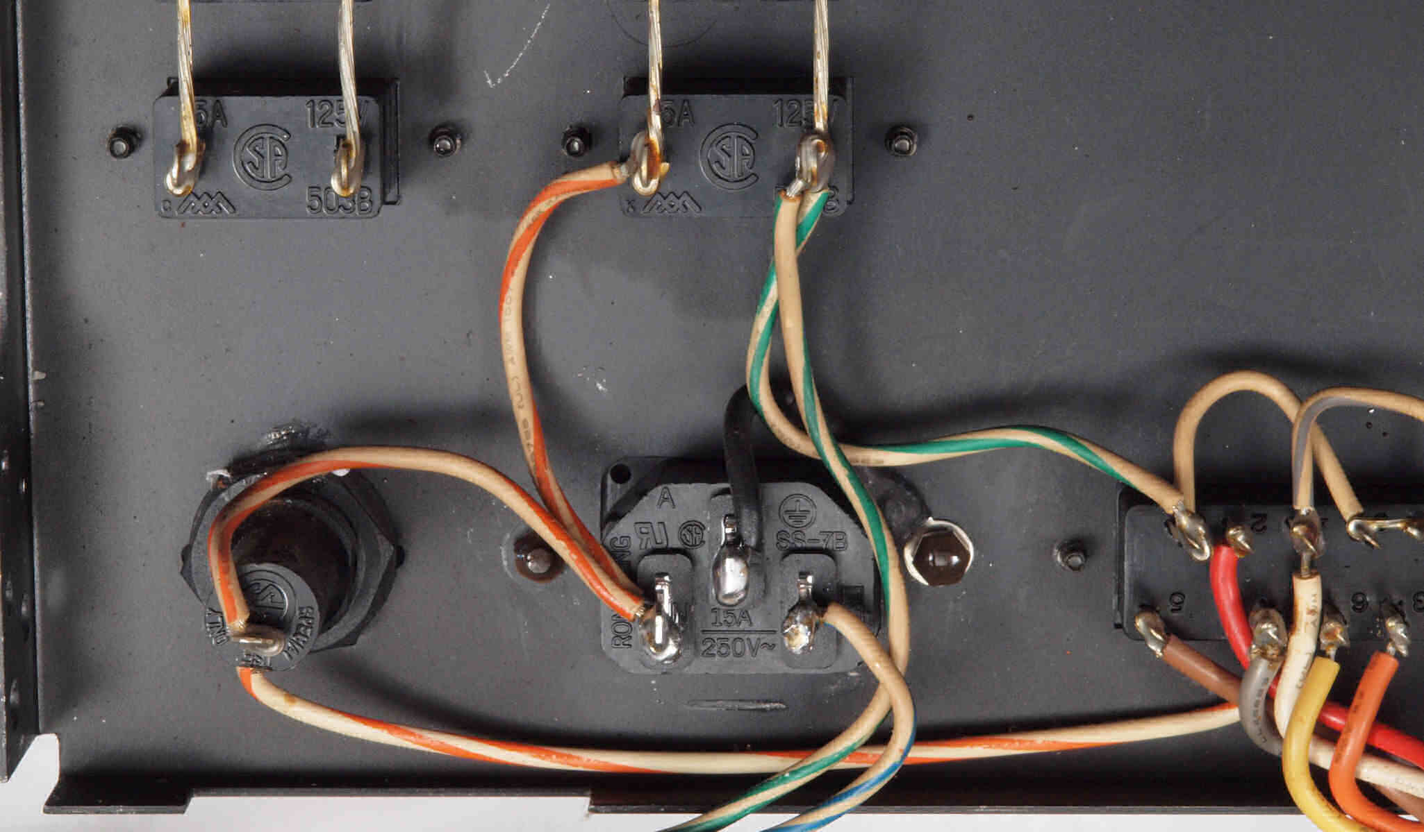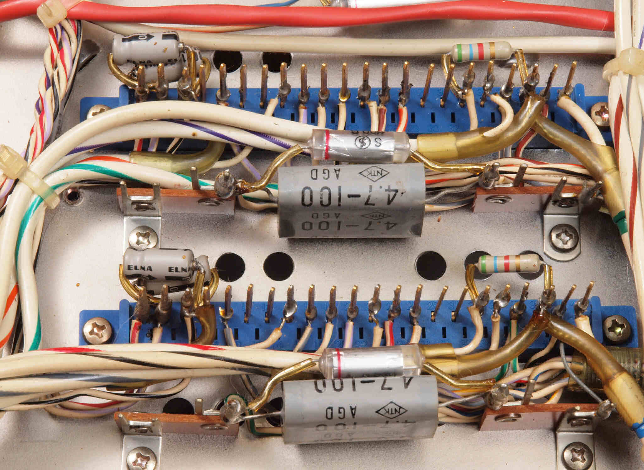 A52. 点検中 入力RCA端子郡。 テフロン絶縁RCA端子に交換。 WBT−0201は定価で工賃込みです。