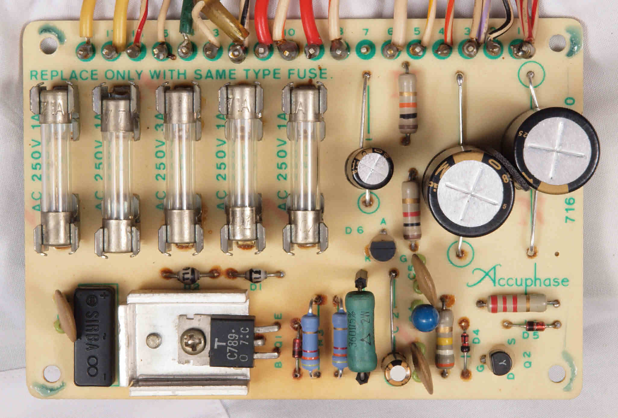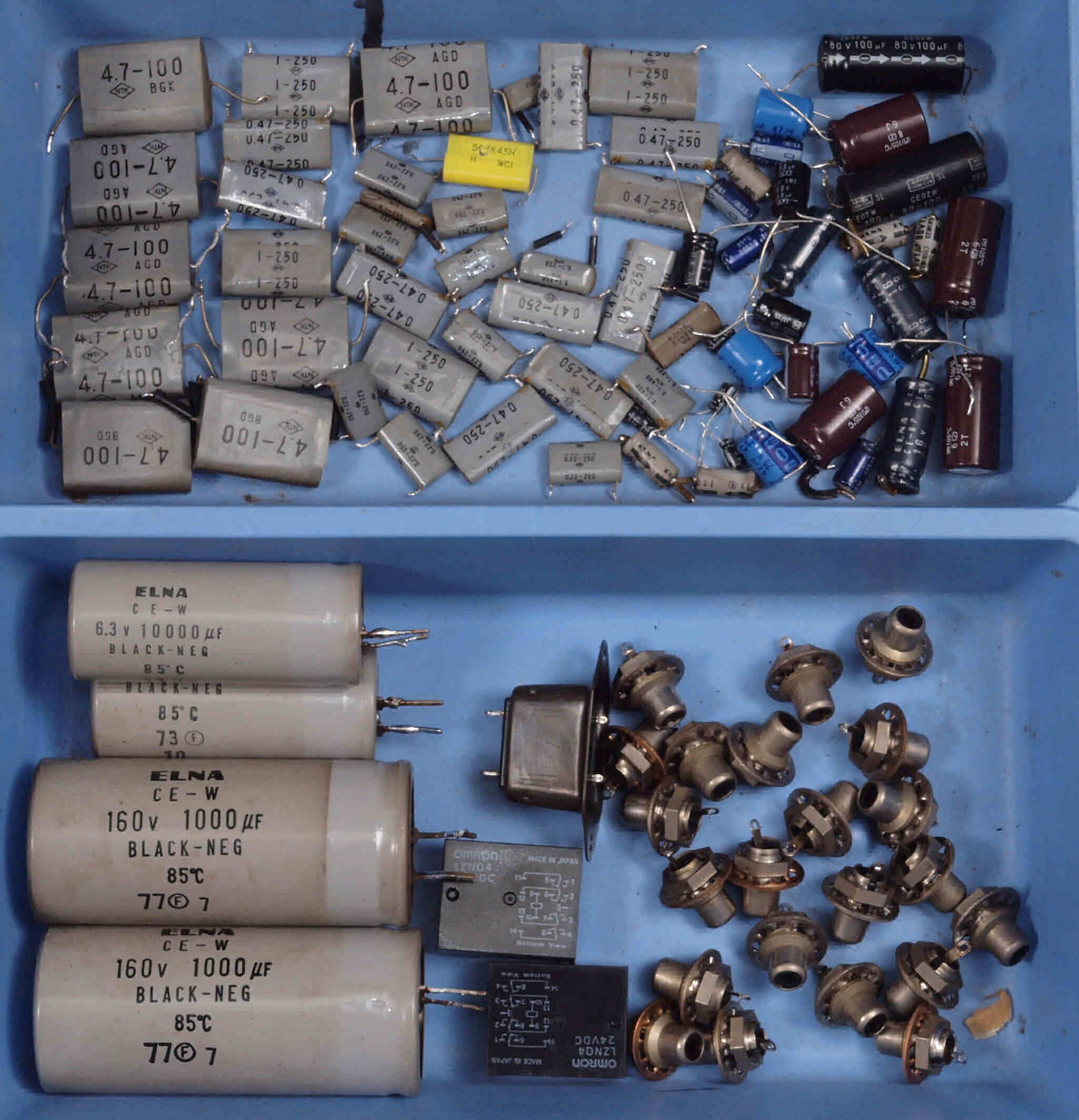 TR(トランジスター)4個、電解コンデンサー2個、フイルムコンデンサー3個、FET(電界効果トランジスター)2個交換。