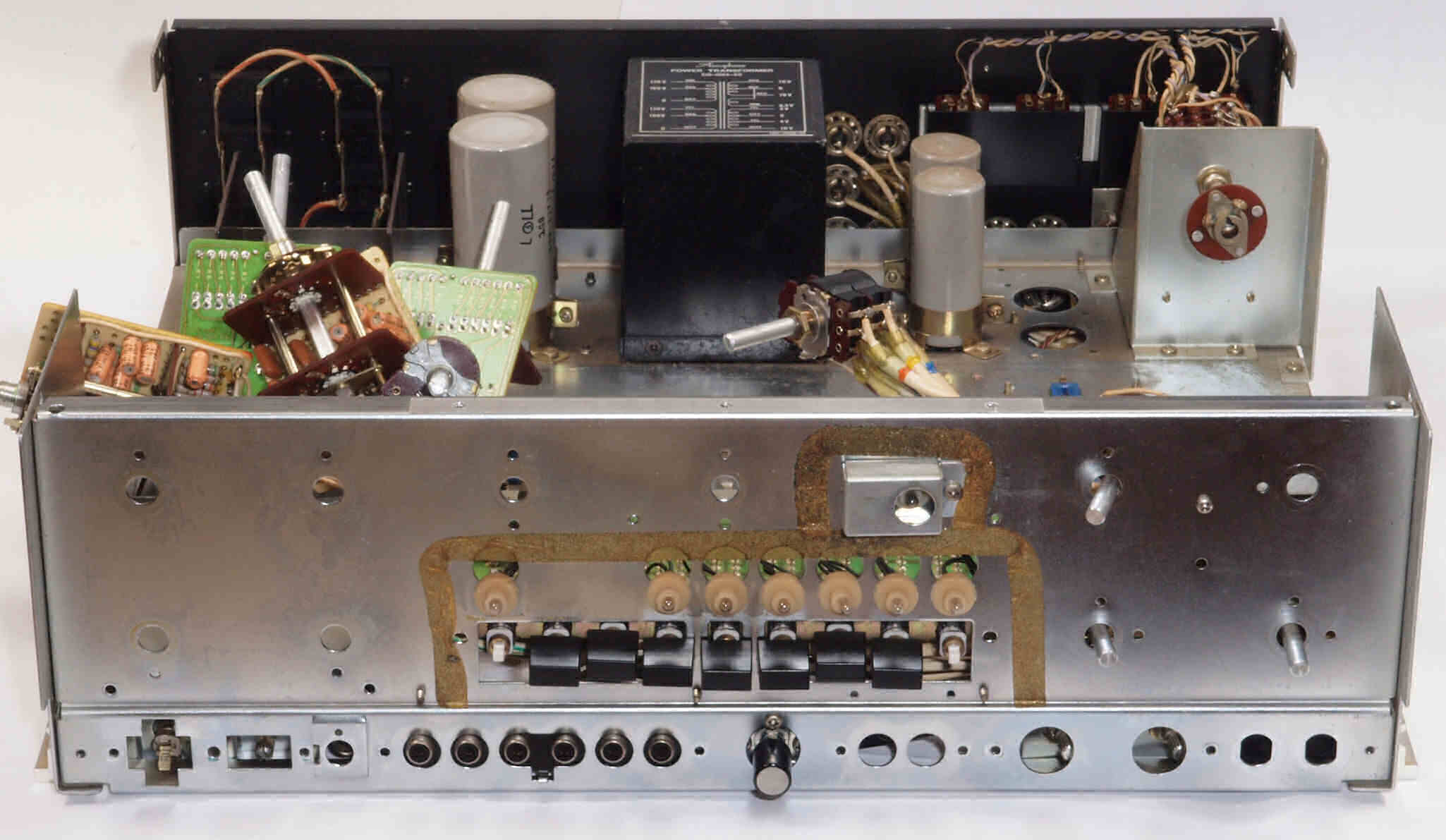 C1. 修理中 上下蓋、シールド、左右パネル、基板類を外したシャーシを上から見る。