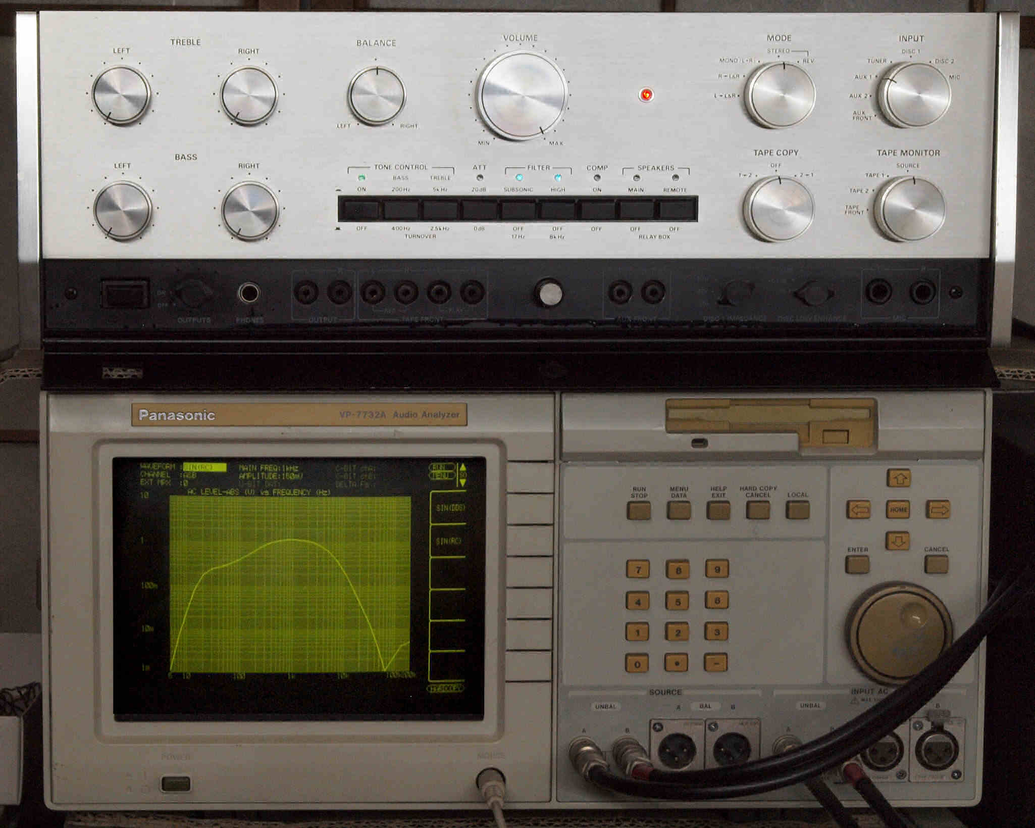 F1. 下のオーディオアナライザーVP−7732Aで自動測定。