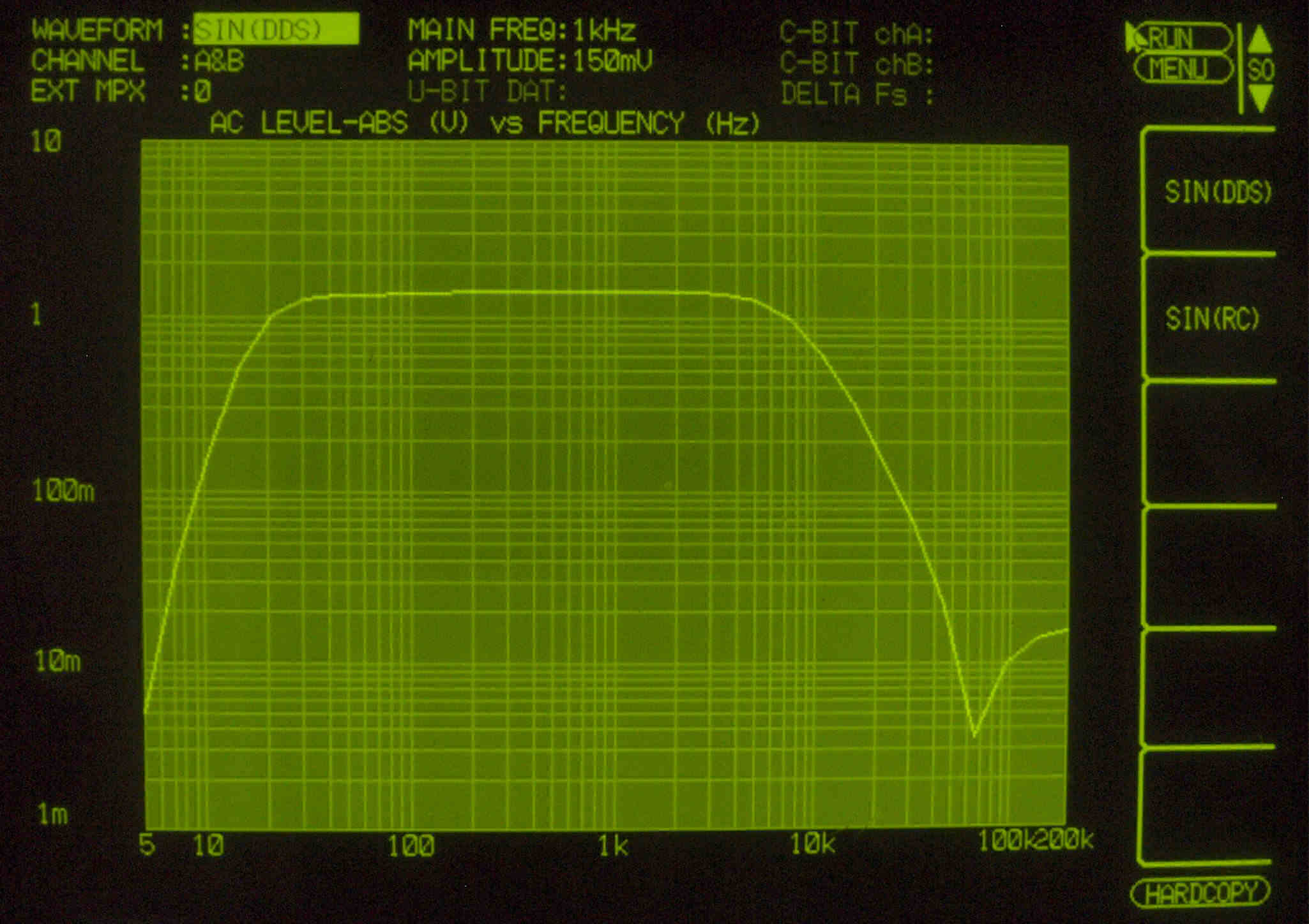 T3. MM,1kHz入力、R側出力電圧2V出力、 0.1284%歪み。