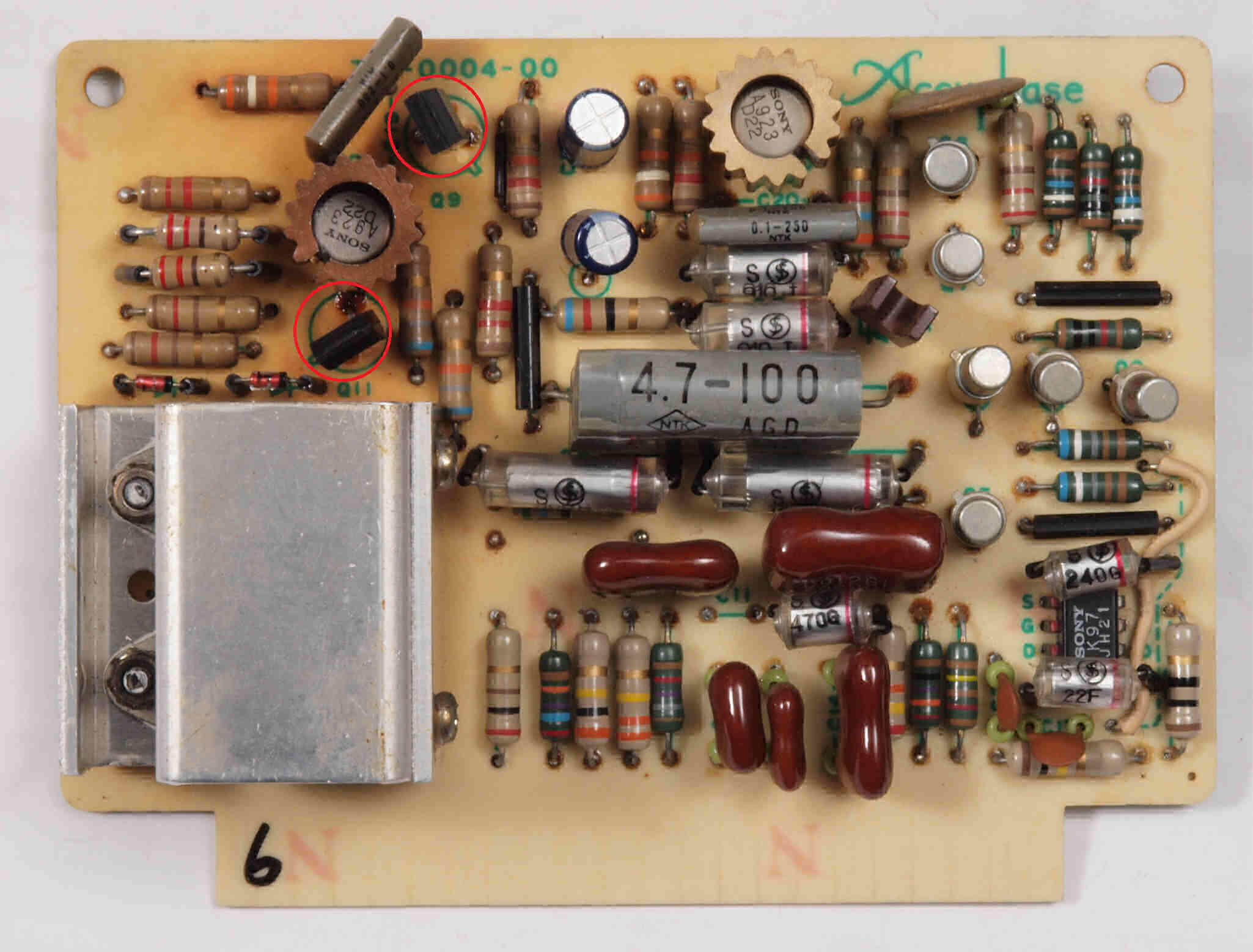 • 2個の2SA923のコンプリメンタリーTR(トランジスター)がモールド型2SC3209に交換してある。