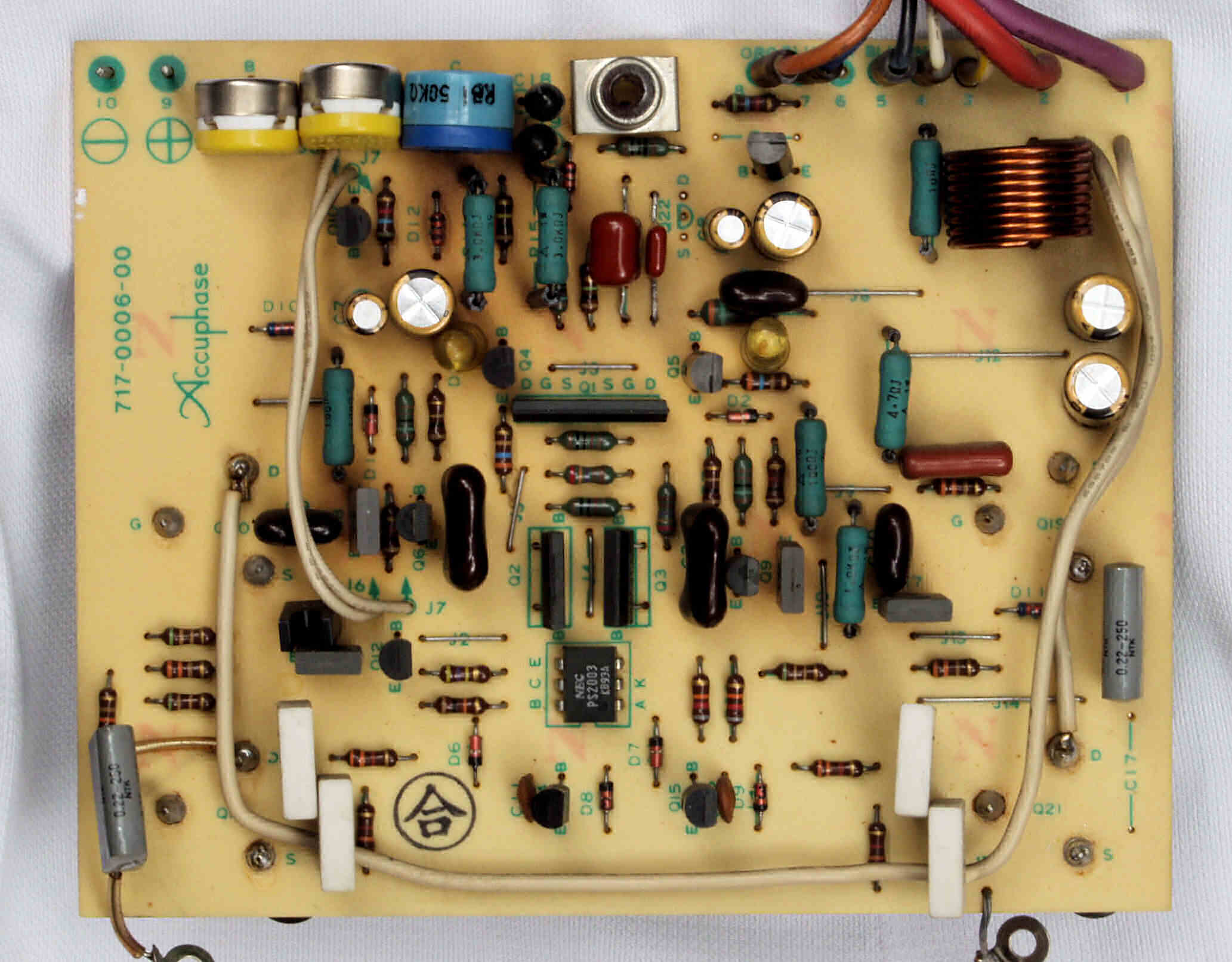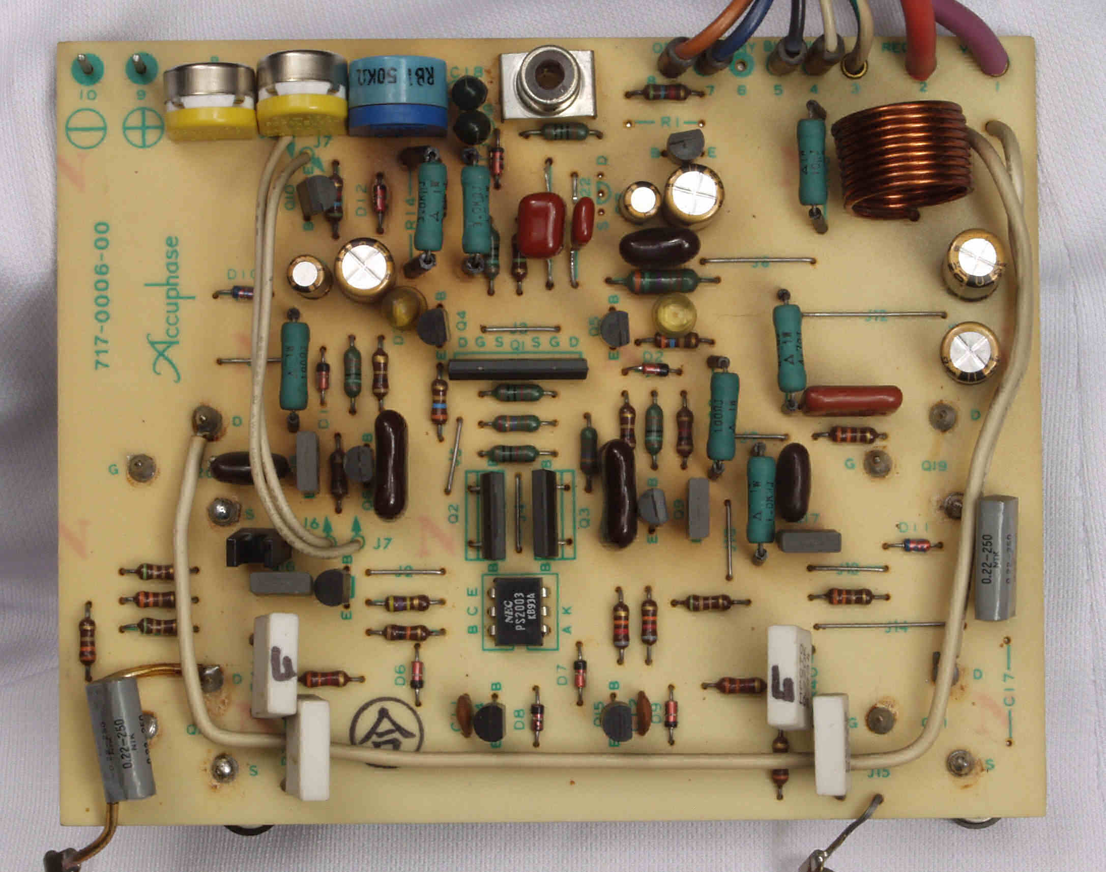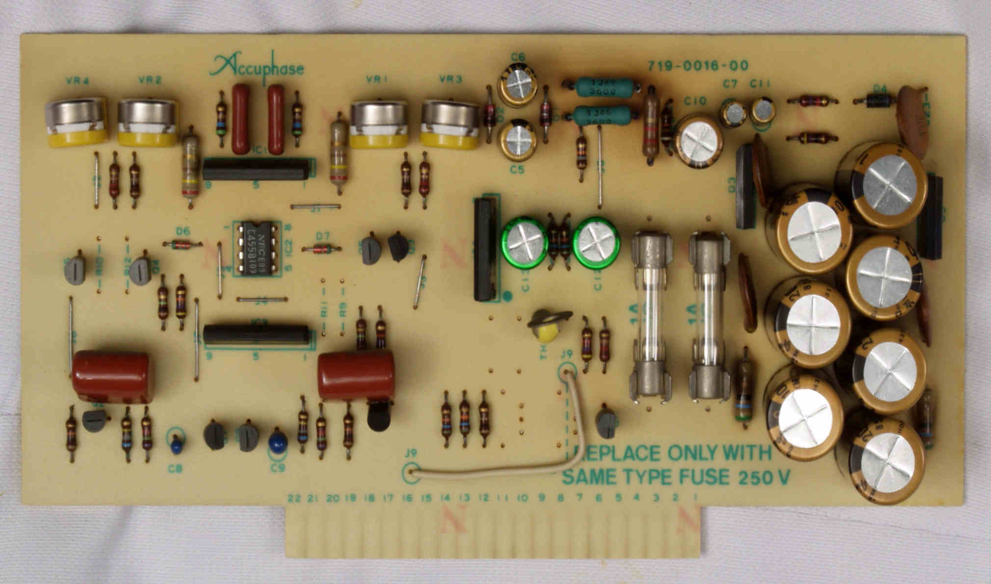 | C22. 修理後 R側ドライブ基板 初段FET、バランス・バイアス調整用半固定VR3個、電解コンデンサー6個交換 | ||||||||||||||||||||||||||