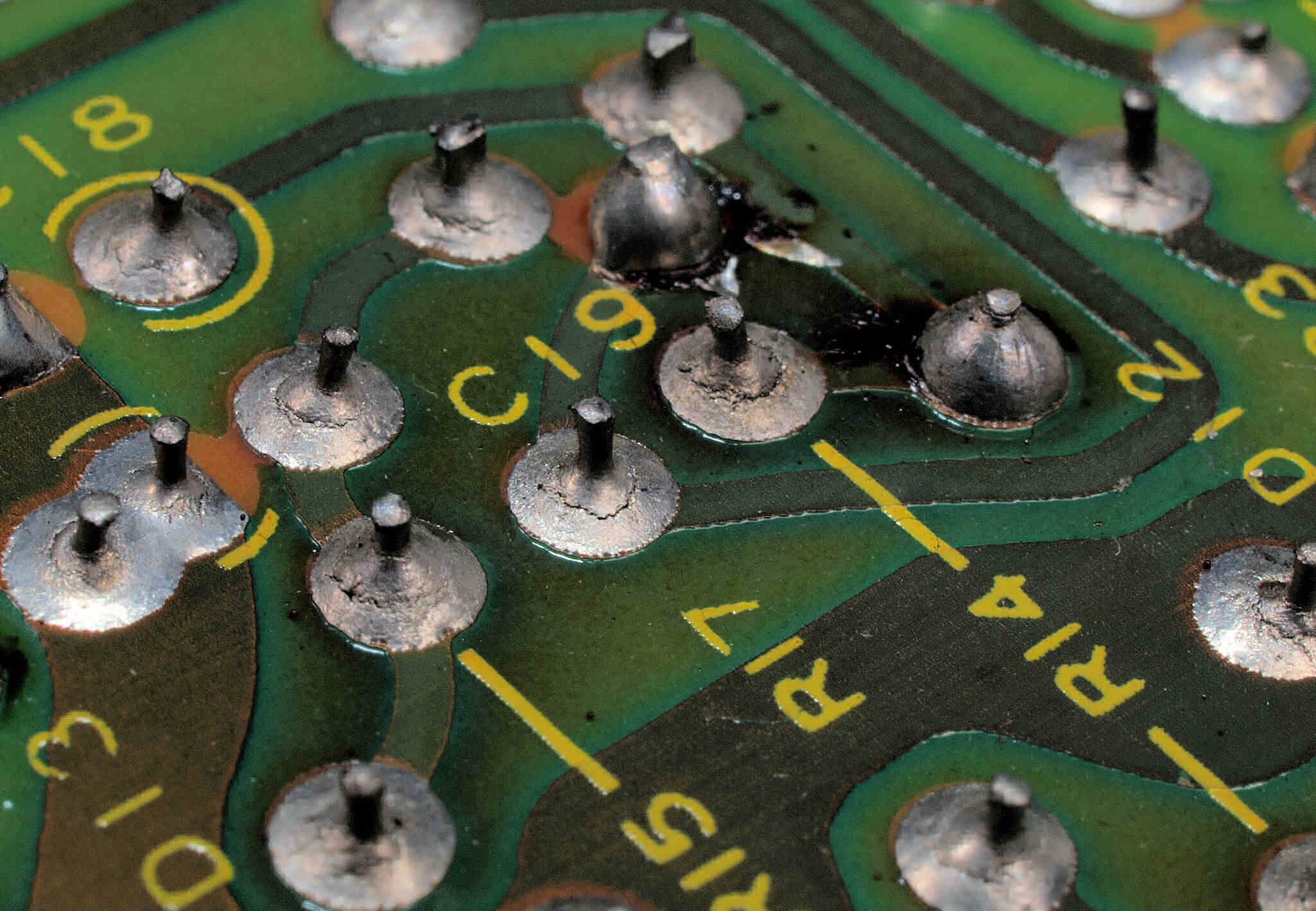 | C232. 修理前 R側ドライブ基板裏、半田不良ケ所 | ||||||||||||||||||||||||||