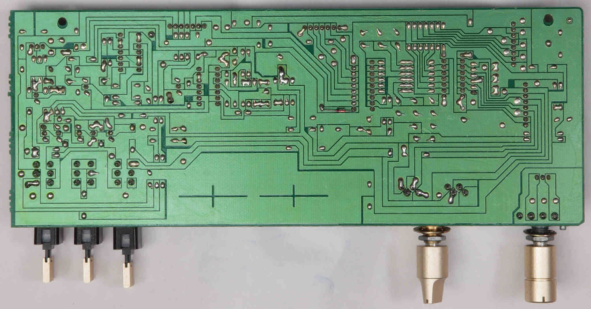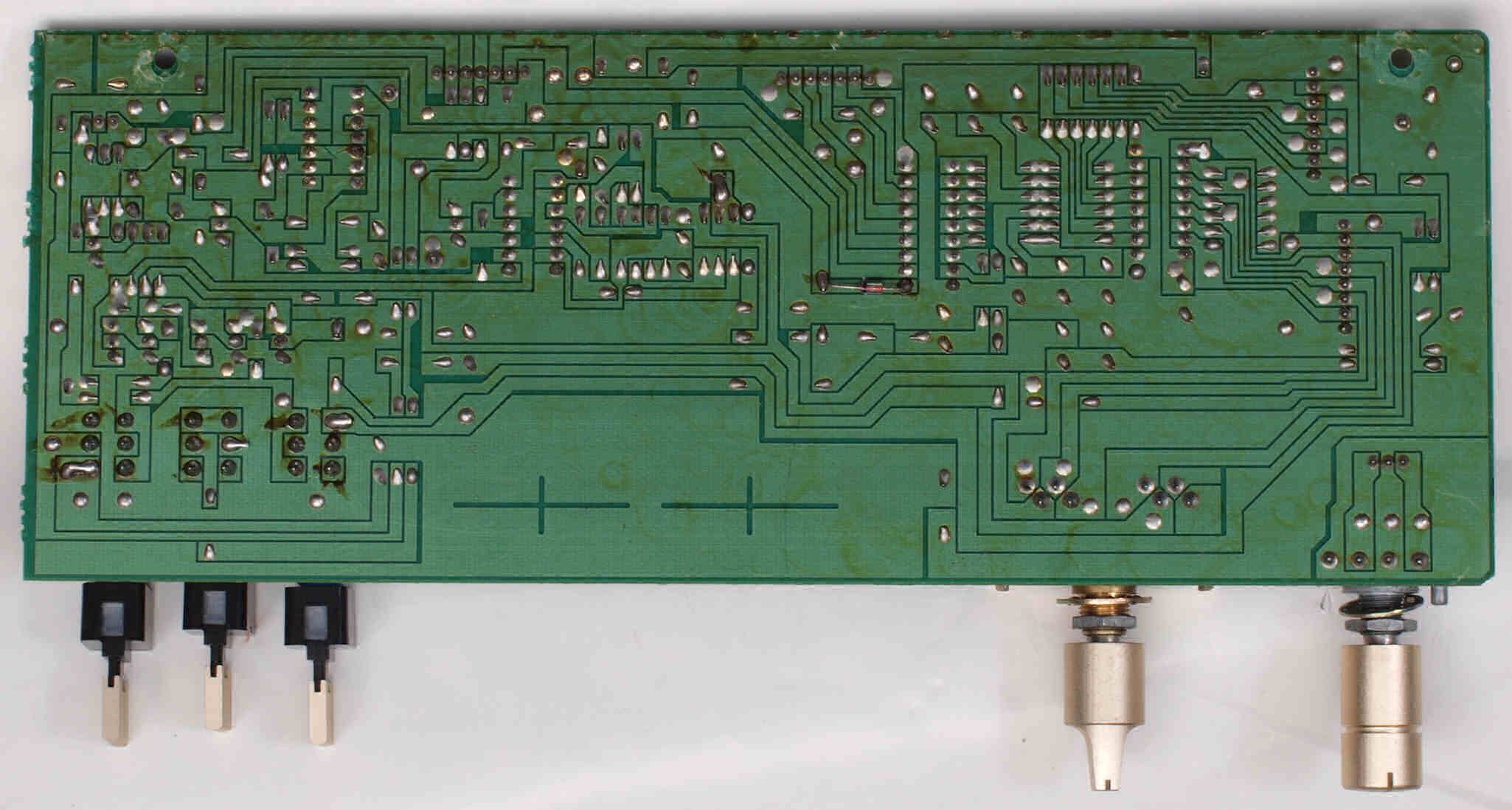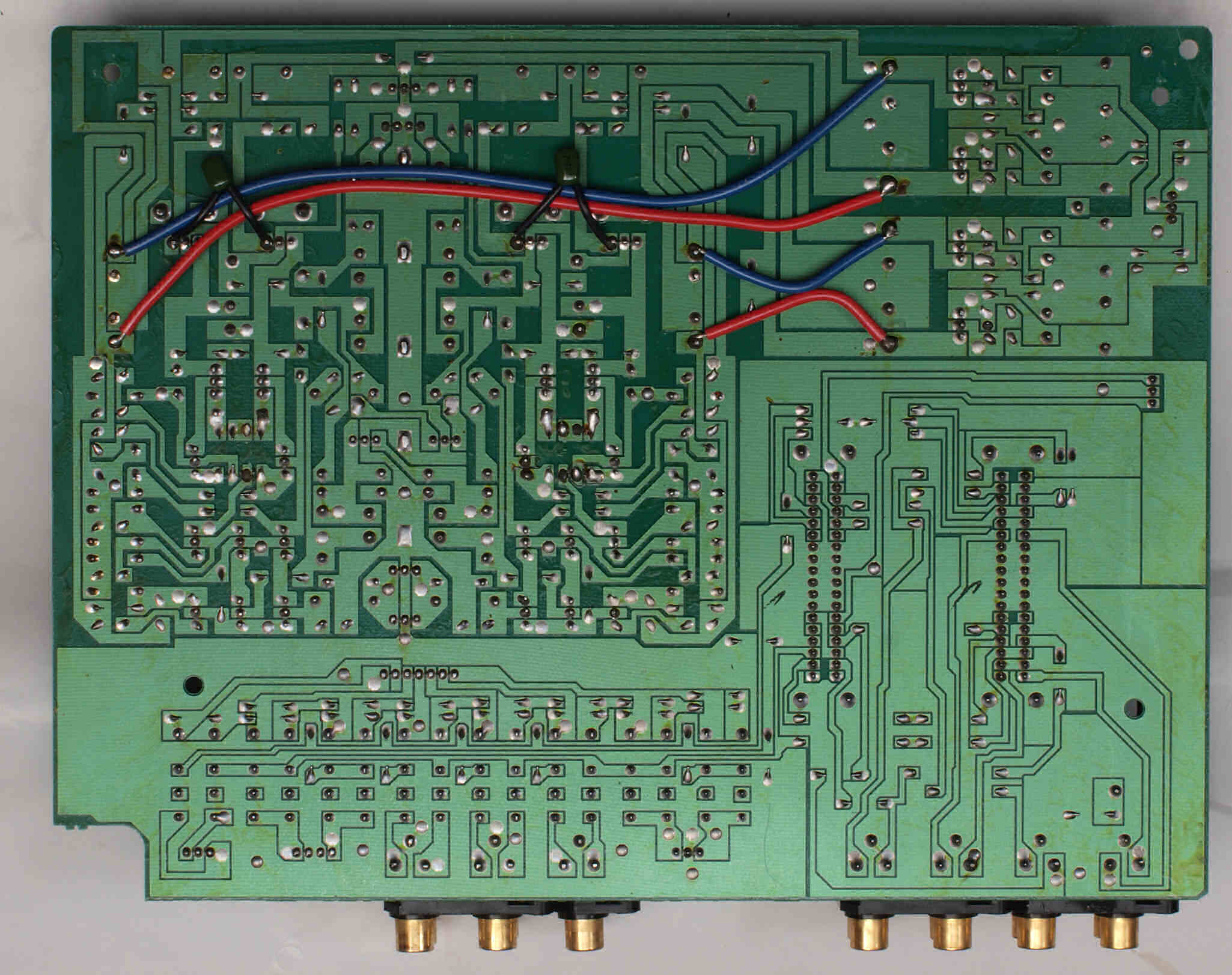 | C25. 修理(半田補正)後 EQ−AMP・入出力切替へ基板裏。 全ての半田をやり修す | ||||||||||||||||||||||||||||||||||||||||||||||||