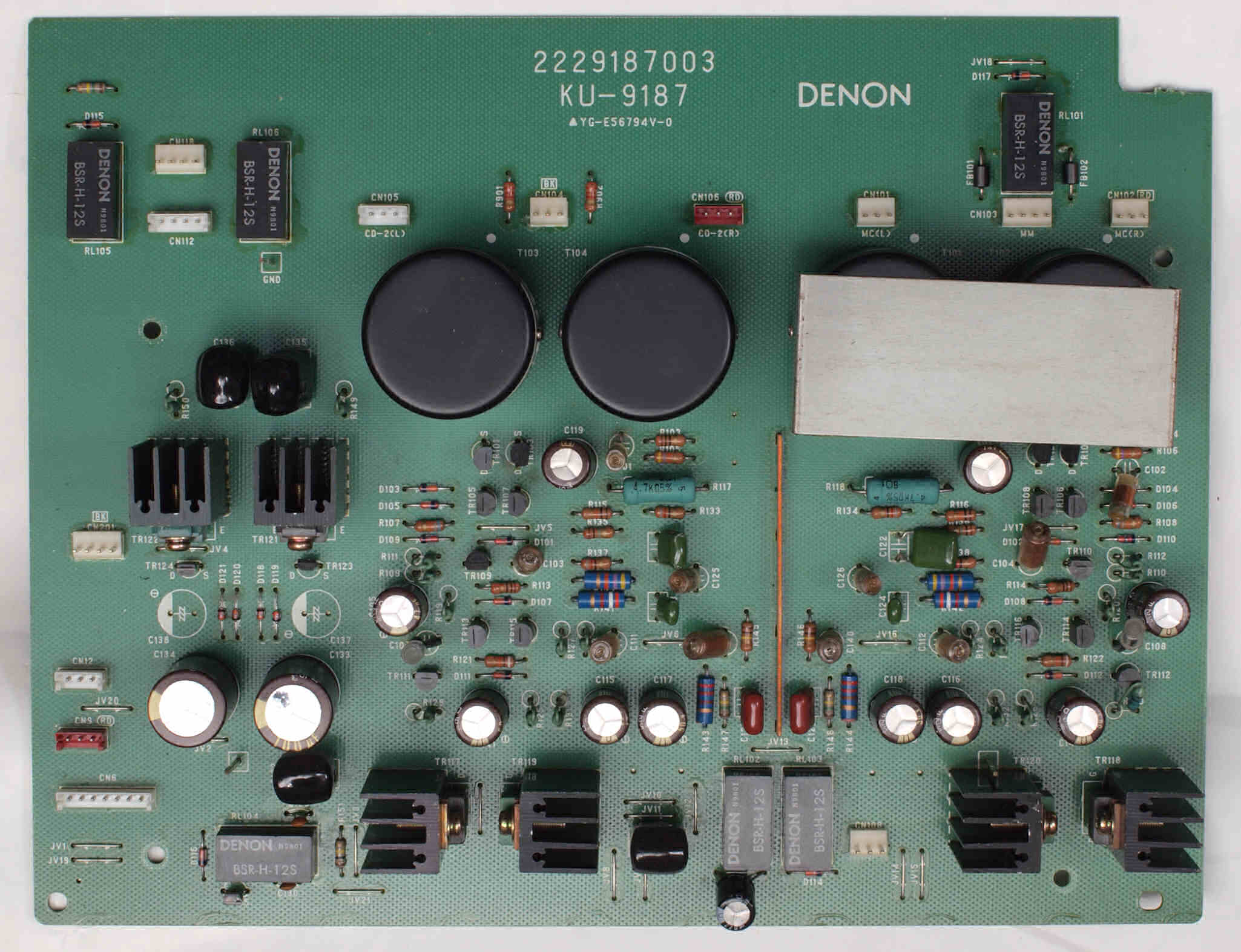 | C52. 修理後 電源基盤。 電解コンデンサー7個交換、フイルムコンデンサー2個追加 | ||||||||||||||||||||||||||||||||||||||||||||||||