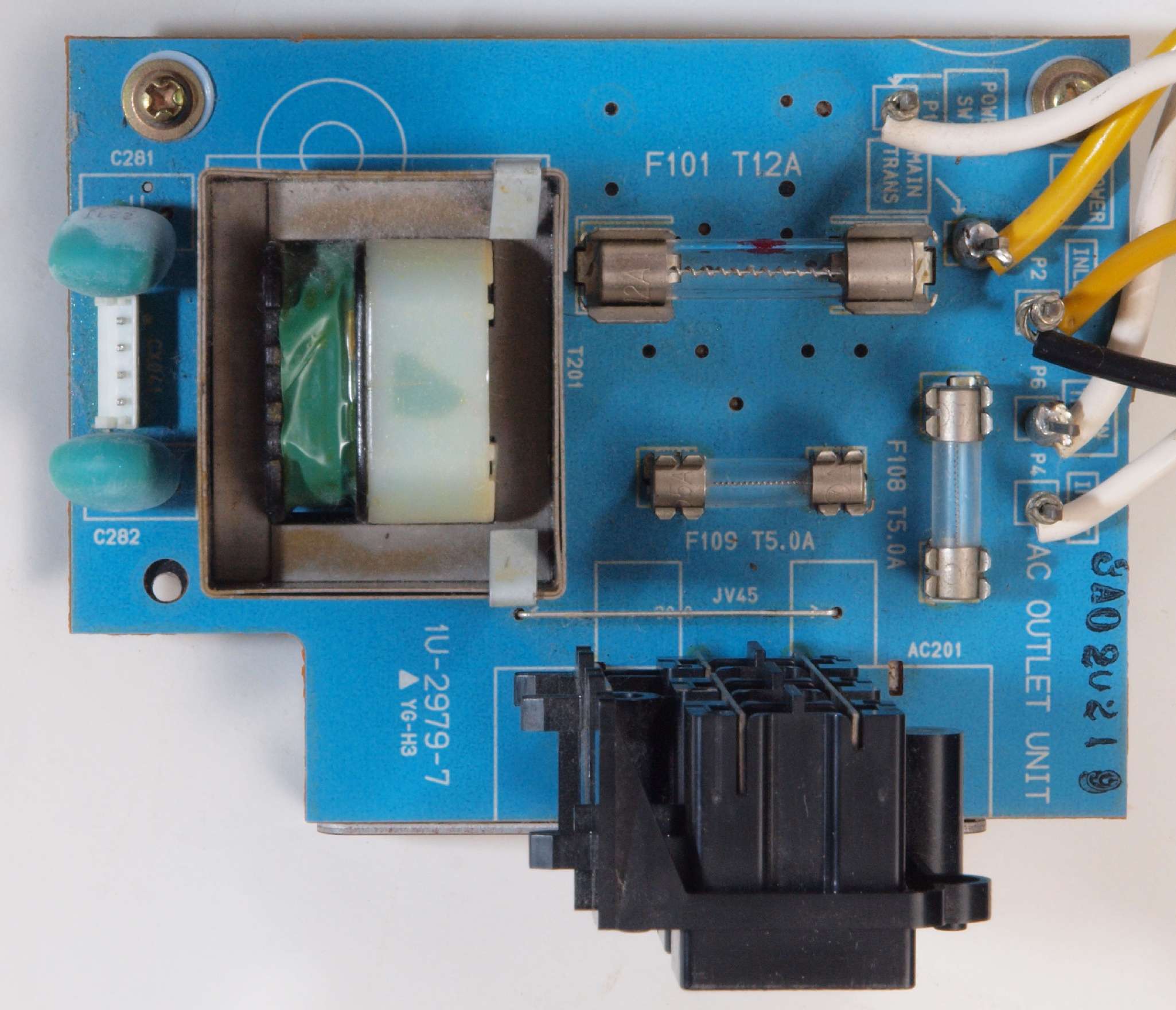 | CB2. 修理前 REC出力RCA端子基板裏。 | ||||||||||||||||||||||||||||||||||||||