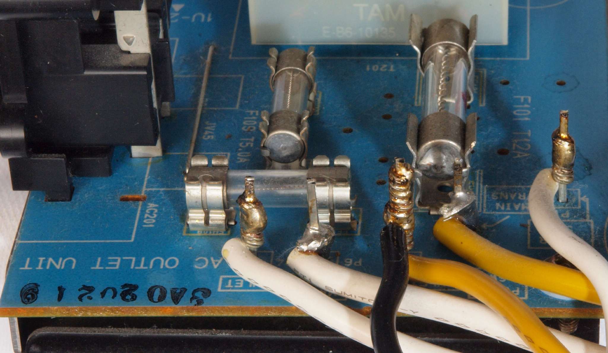 | CB7. 修理後 ヒューズ基板。ラッピング線に半田を浸み込ませる。 | ||||||||||||||||||||||||||||||||||||||