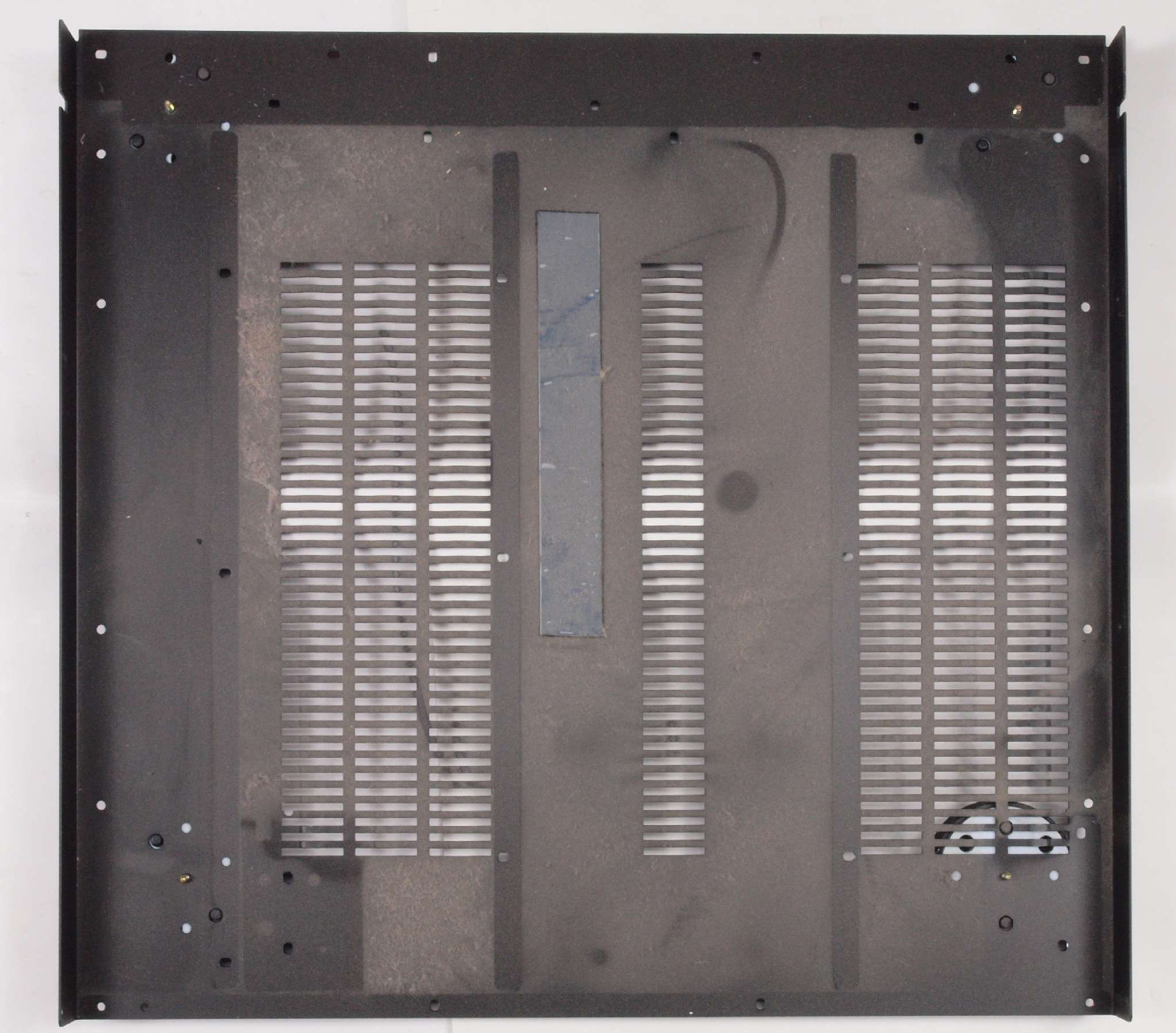 | C. 修理状況。 画像をクリックすると、大きく(横幅2050ドット)表示されます。 C1. 修理中 基板、前パネルを取りさったシャシ。 |